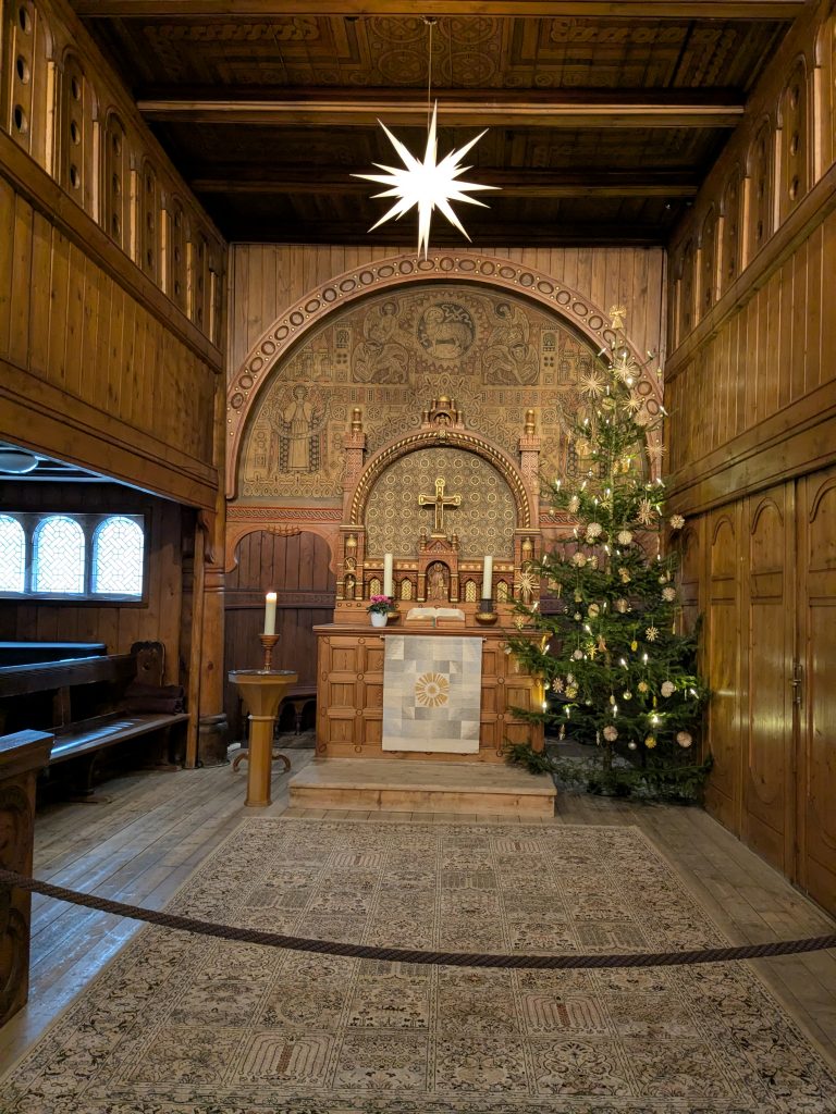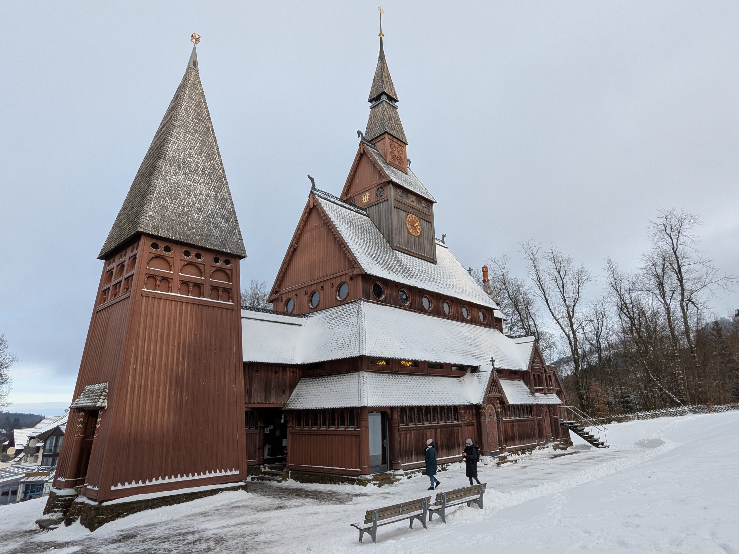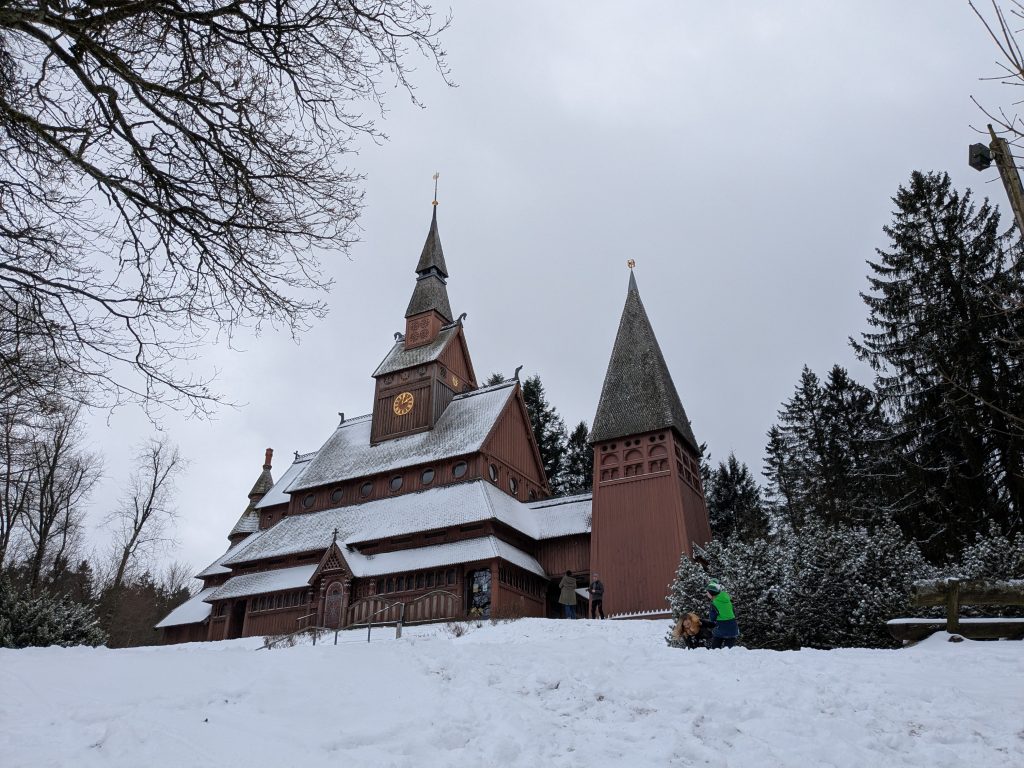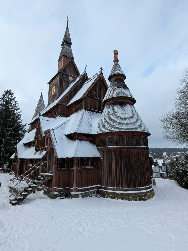 Beim Frühstück überlegen wir, was wir heute tun wollen, Wandern zu den Ilsefällen oder Besichtigung der Stabkirche in Hahnenklee. In Anbetracht der 300 Höhenmeter und der schlechten Wegebedingungen, die zu den Ilsefällen vor uns liegen, gewinnt Hahnenklee. Also, ab ins Auto. Ein Parkplatz in Hahnenklee ist schnell gefunden und es sind nur ein paar Meter bis zu der wirklich schönen Kirche. Nachdem wir diese ausgiebig innen wie außen betrachtet haben, schlendern wir noch etwas durch den Ort, das lohnt sich aber nicht wirklich und die Seilbahn auf den Berg kann uns auch nicht recht begeistern, zu hoch für Ralf und zu eng für mich. Also zurück zum Auto. Erst jetzt merken wir das wir eigentlich an einem ganz versteckten Automaten ein Parkticket hätten ziehen müssen. Zu spät, also Abfahrt. Wir haben uns für die Rückfahrt für die Strecke über die Okertalsperre entschieden. So gibt es noch einen kurzen Stopp an der Staumauer und am Romkerhaller Wasserfall. Kurz vor Ilsenburg halten wir dann noch an der Burgruine Stapelburg, um die Drohne auszuprobieren. Dann geht es endgültig zurück zum Stellplatz.