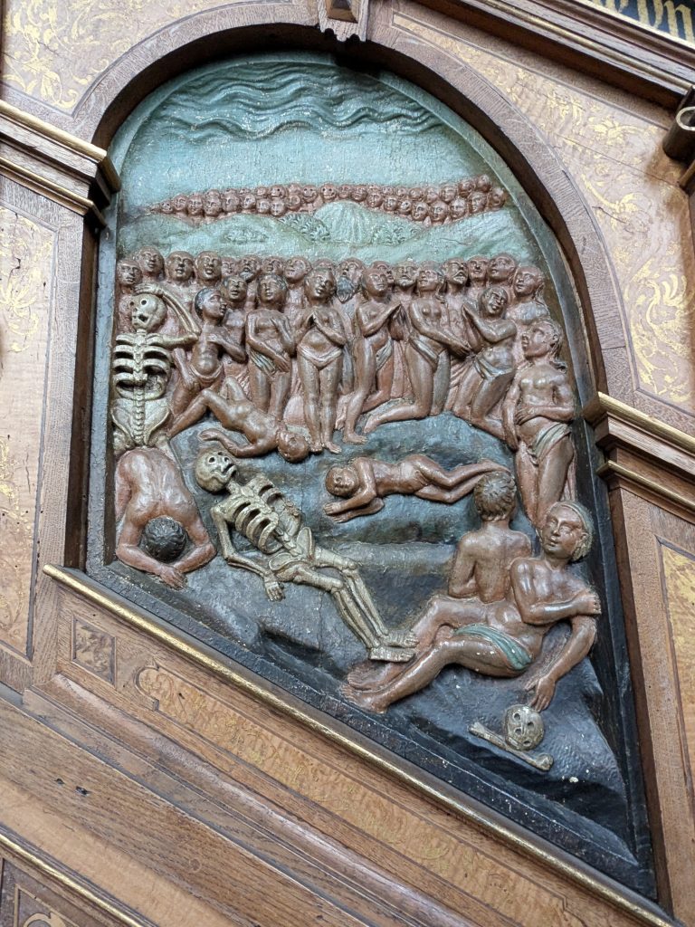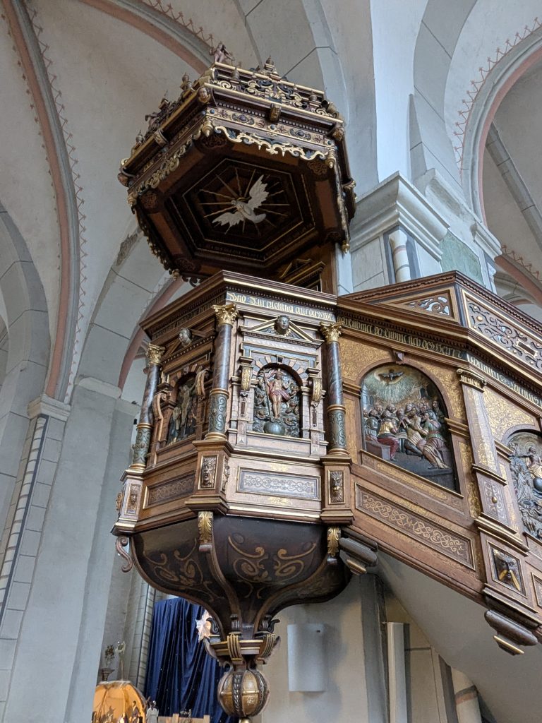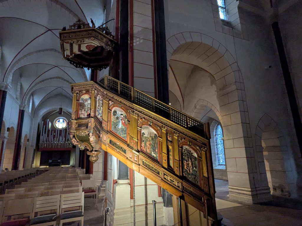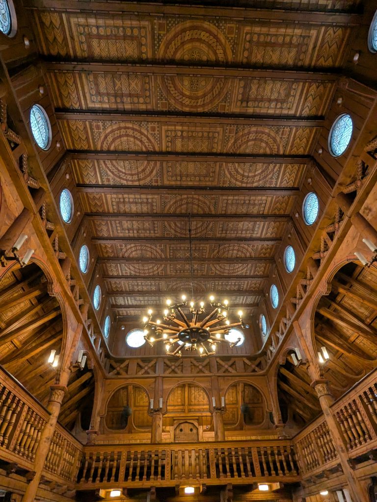 Beim Frühstück überlegen wir, was wir heute tun wollen, Wandern zu den Ilsefällen oder Besichtigung der Stabkirche in Hahnenklee. In Anbetracht der 300 Höhenmeter und der schlechten Wegebedingungen, die zu den Ilsefällen vor uns liegen, gewinnt Hahnenklee. Also, ab ins Auto. Ein Parkplatz in Hahnenklee ist schnell gefunden und es sind nur ein paar Meter bis zu der wirklich schönen Kirche. Nachdem wir diese ausgiebig innen wie außen betrachtet haben, schlendern wir noch etwas durch den Ort, das lohnt sich aber nicht wirklich und die Seilbahn auf den Berg kann uns auch nicht recht begeistern, zu hoch für Ralf und zu eng für mich. Also zurück zum Auto. Erst jetzt merken wir das wir eigentlich an einem ganz versteckten Automaten ein Parkticket hätten ziehen müssen. Zu spät, also Abfahrt. Wir haben uns für die Rückfahrt für die Strecke über die Okertalsperre entschieden. So gibt es noch einen kurzen Stopp an der Staumauer und am Romkerhaller Wasserfall. Kurz vor Ilsenburg halten wir dann noch an der Burgruine Stapelburg, um die Drohne auszuprobieren. Dann geht es endgültig zurück zum Stellplatz.