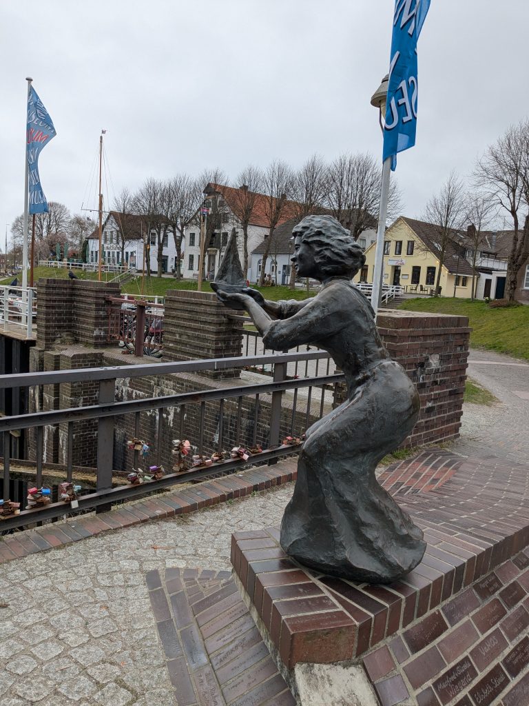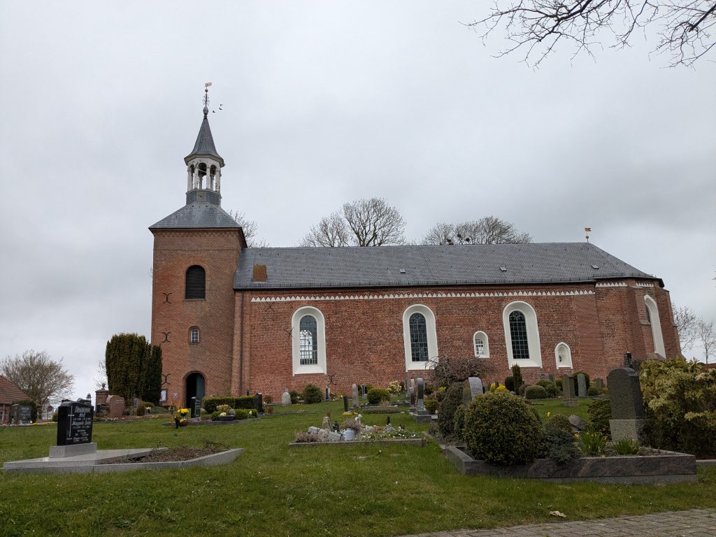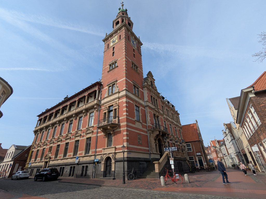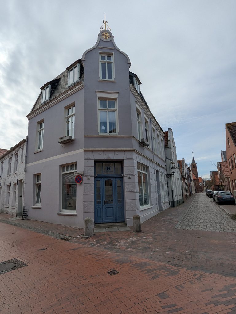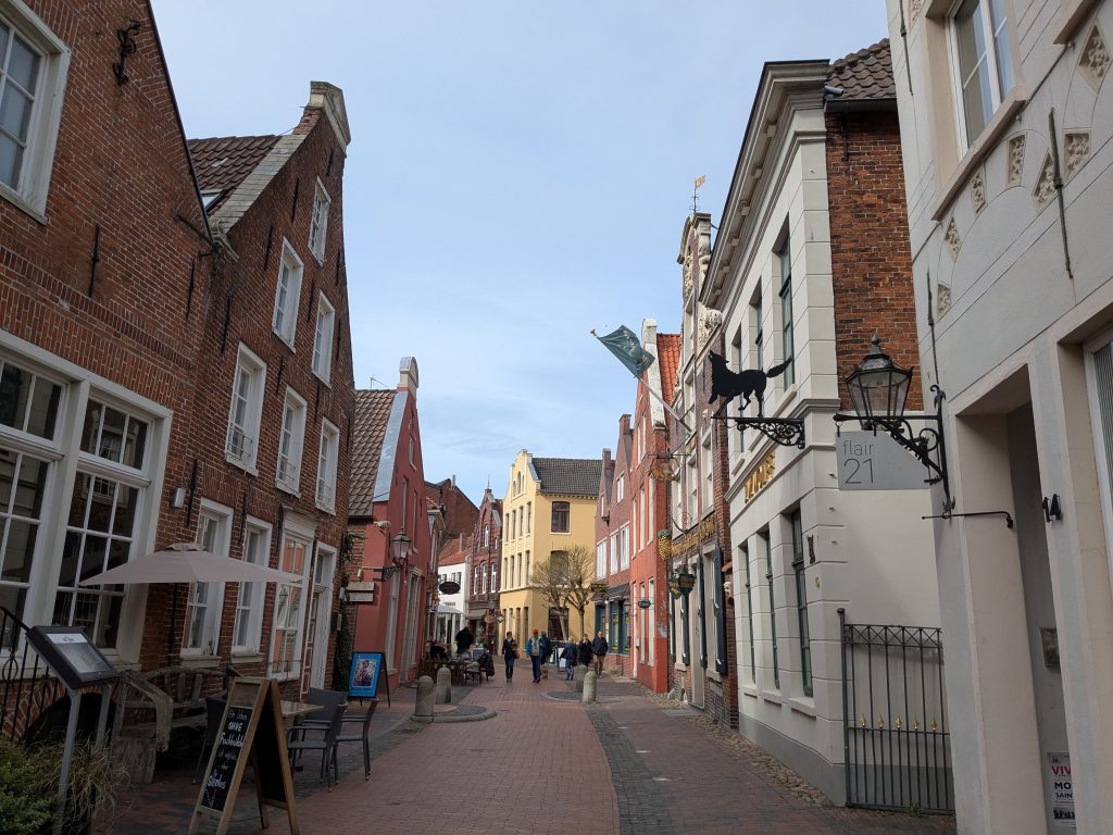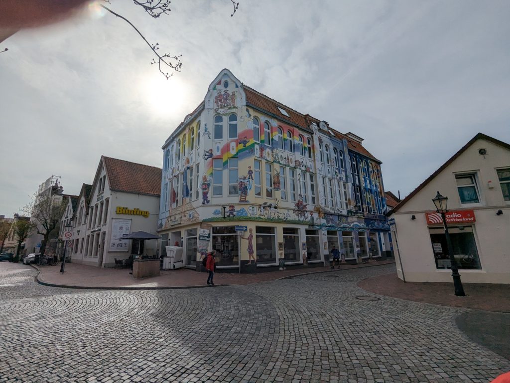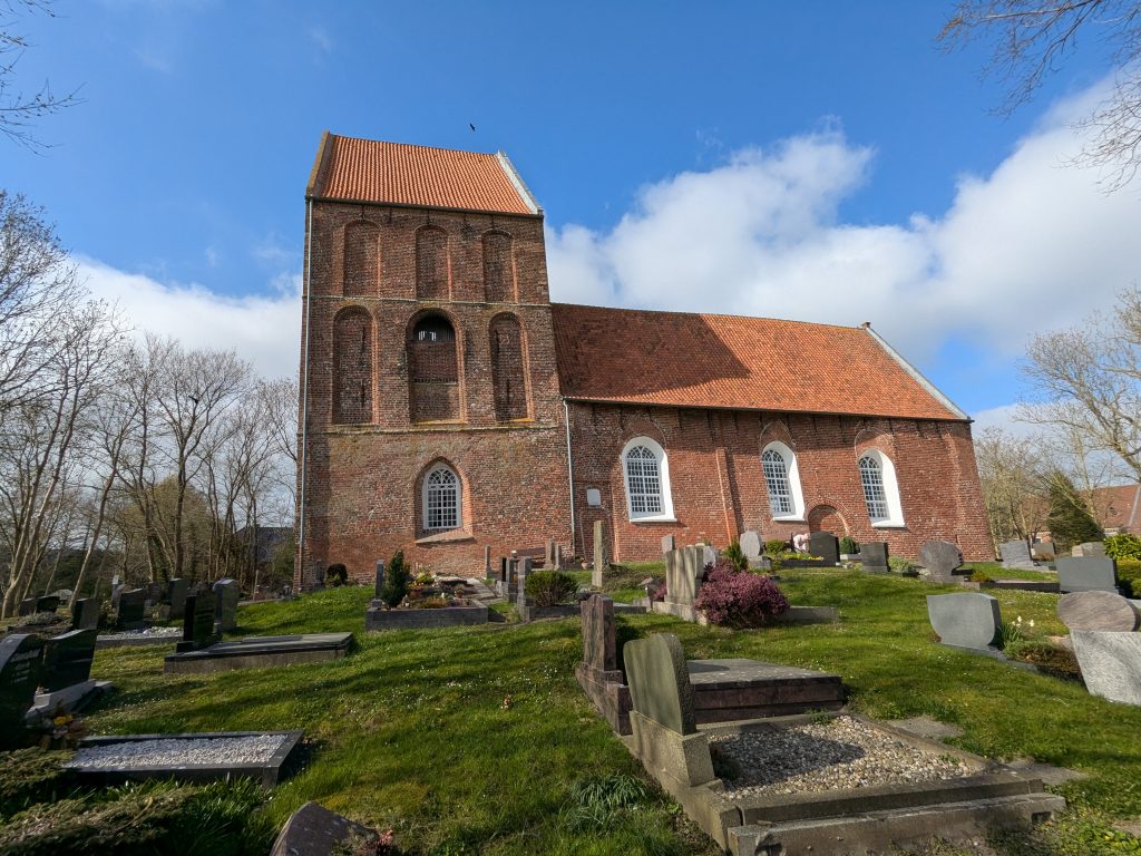 Mal wieder lange geschlafen und dann war auch noch die Dusche kaputt, ging nicht aus 😉 . Wir wollen es mal mit einem richtigen Campingplatz in Leer versuchen, klappt wieder nicht, Mittagspause von 12 – 15 Uhr, 2 Stunden warten, nee, so wird das nichts mit dem Geld verdienen. Nächster Stellplatz unter der Ems durch in Ditzum. 1. Versuch Ankerplatz: kein Platz für den Ford, auch nicht für Geld, 2. Versuch Am Deich, der Lütte parkt kostenlos und es gibt einen netten Eckplatz, der Nachbarhund erhebt sich und ich kann Parken. 22 € und Brötchenservice. Nach dem Essen geht es in die tobende City von Leer, wieder unter der Ems durch. Am historischen Hafen genießen wir einen ostfriesischen Tee mit Kuchen. Ein Labcache zeigt uns die Altstadt von Leer, wir besuchen auch noch 2 Drehorte der Friesland Krimis, „Habedanks Bestattungsunternehmen“ und „Insa Scherzingers Apotheke“, dann wieder durch den Emstunnel 14 km durch die vielen …um’s (Jemgum, Midlum, Critzum, Hatzum) bis nach Ditzum . Die Anmeldung ist jetzt besetzt und ist fix erledigt. Nach einem schnellen Espresso laufen wir in den Ort, Fischbrötchen für den Abend ergattern. Ein Labcache mit Episoden aus dem Frieslandkrimi mit Brocki (den ich in Göttingen auf dem Stellplatz getroffen habe) und Süher führt uns durch Ditzum: kleiner Hafen, Windmühle, die Ems vorm Deich und die Kirche.
