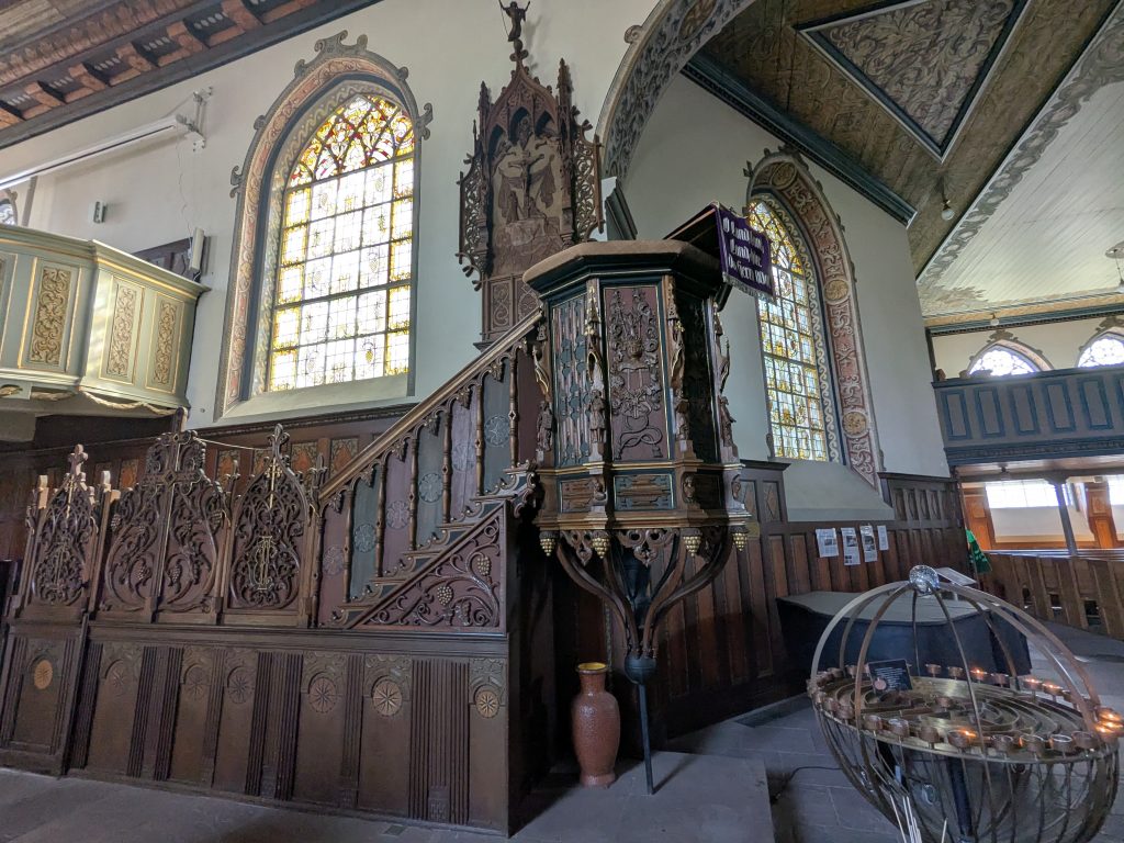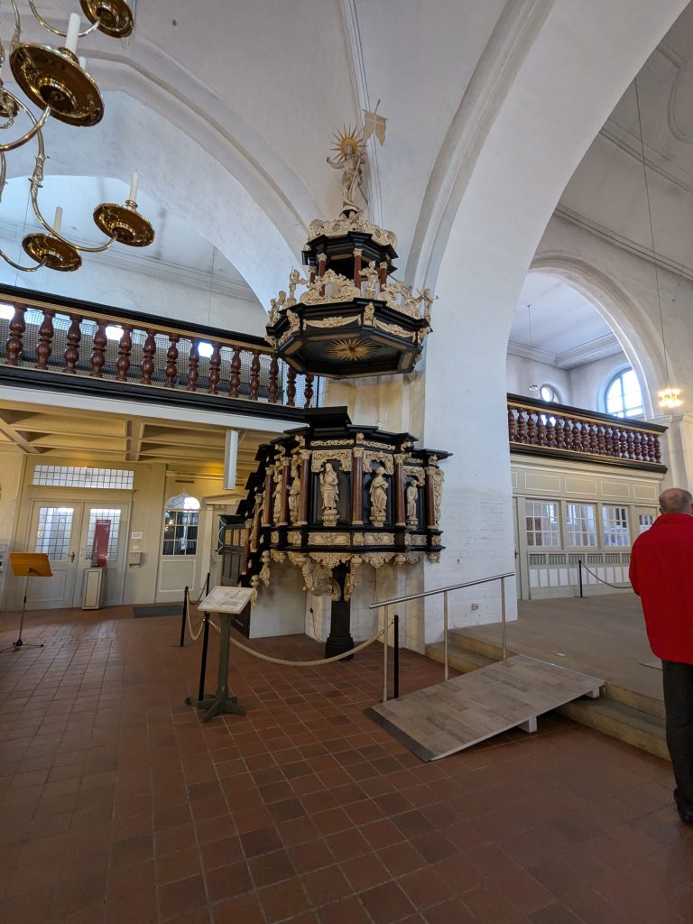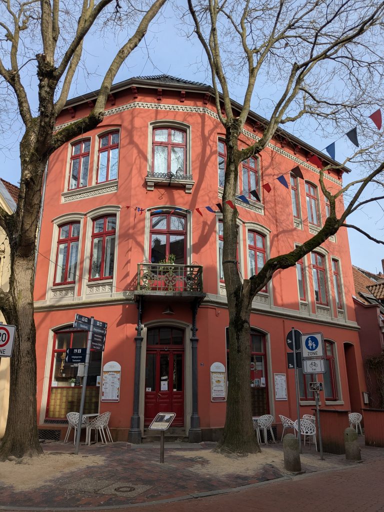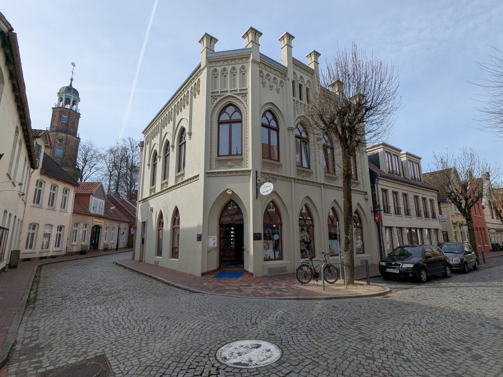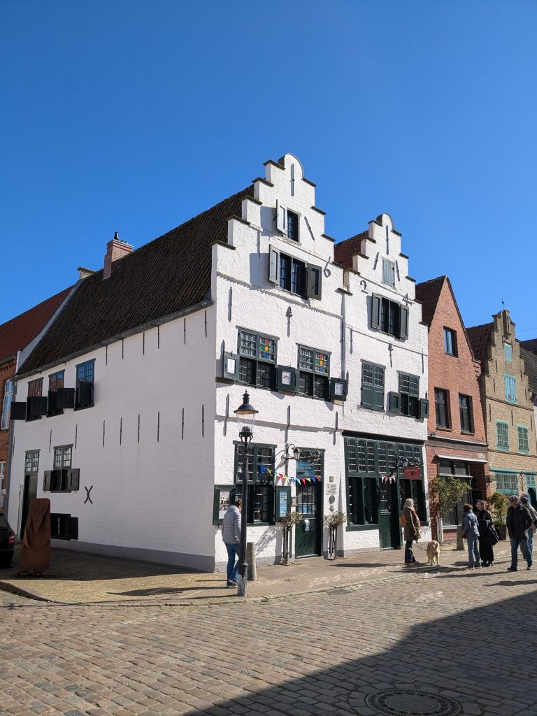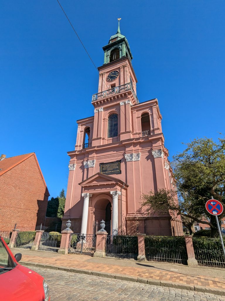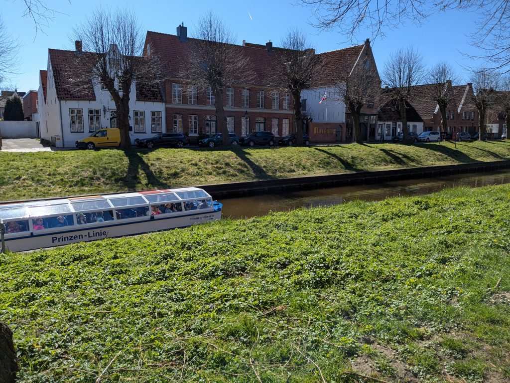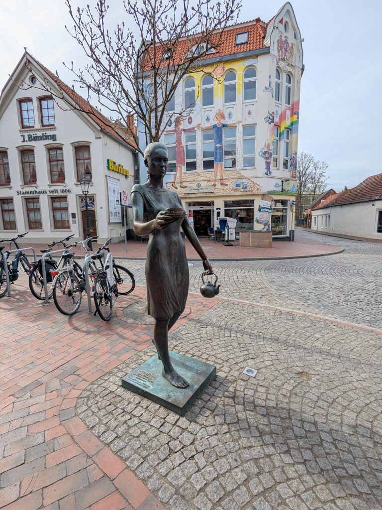 Mal wieder lange geschlafen und dann war auch noch die Dusche kaputt, ging nicht aus 😉 . Wir wollen es mal mit einem richtigen Campingplatz in Leer versuchen, klappt wieder nicht, Mittagspause von 12 – 15 Uhr, 2 Stunden warten, nee, so wird das nichts mit dem Geld verdienen. Nächster Stellplatz unter der Ems durch in Ditzum. 1. Versuch Ankerplatz: kein Platz für den Ford, auch nicht für Geld, 2. Versuch Am Deich, der Lütte parkt kostenlos und es gibt einen netten Eckplatz, der Nachbarhund erhebt sich und ich kann Parken. 22 € und Brötchenservice. Nach dem Essen geht es in die tobende City von Leer, wieder unter der Ems durch. Am historischen Hafen genießen wir einen ostfriesischen Tee mit Kuchen. Ein Labcache zeigt uns die Altstadt von Leer, wir besuchen auch noch 2 Drehorte der Friesland Krimis, „Habedanks Bestattungsunternehmen“ und „Insa Scherzingers Apotheke“, dann wieder durch den Emstunnel 14 km durch die vielen …um’s (Jemgum, Midlum, Critzum, Hatzum) bis nach Ditzum . Die Anmeldung ist jetzt besetzt und ist fix erledigt. Nach einem schnellen Espresso laufen wir in den Ort, Fischbrötchen für den Abend ergattern. Ein Labcache mit Episoden aus dem Frieslandkrimi mit Brocki (den ich in Göttingen auf dem Stellplatz getroffen habe) und Süher führt uns durch Ditzum: kleiner Hafen, Windmühle, die Ems vorm Deich und die Kirche.
