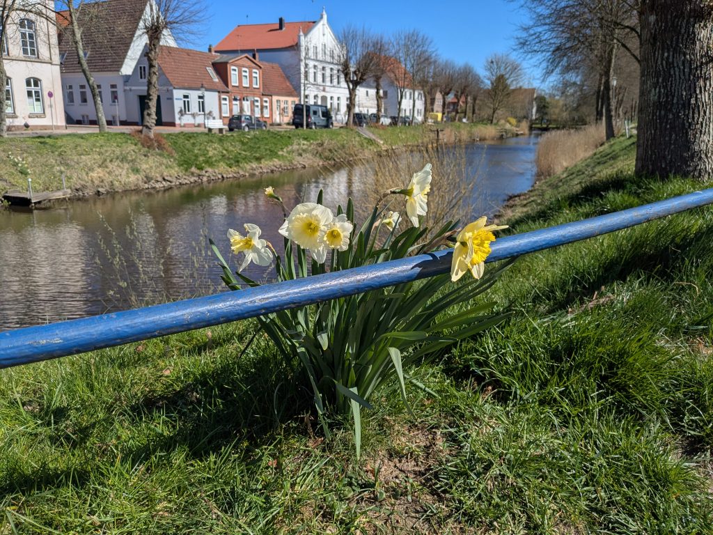 Mal schön ausgeschlafen fahren gegen 11 Uhr los nach Büsum, sollte eigentlich morgen passieren, aber der Schmuckladen hat Montags zu. Parken für lau auf dem großen Platz vorm Ort. Ist aber dennoch nicht so weit zu laufen. Ein Fischbrötchen später haben wir fast alles gesehen, nur nicht das Meer. 4 Euro pro Person ist dann doch zuviel, um mal eben auf den Deich zu latschen. Wir tun uns kurz die Shoppingmeile an. Danach geht es zum Punkt 2 der Tagesordnung: Husum. Auch hier ist heute das Parken gratis. Ist aber auch nicht so voll. Am Hafen gibt es Waffel mit Kirschen, Blaubeerbecher in einer Waffel und Heißgetränke. Kurz zum Schlosspark, aber die Krokusse sind schon verblüht, vor kurzem muss es hier ganz blau gewesen sein. Auf dem Rückweg ein kurzer Stop bei Lidl (viele Läden haben hier Sonntags geöffnet) und wir haben für die nächsten Tage genug Lebensmittel.