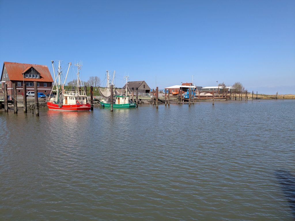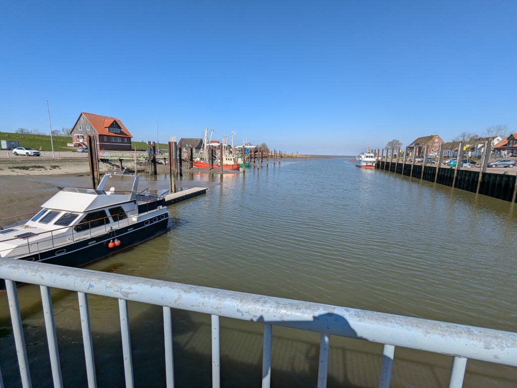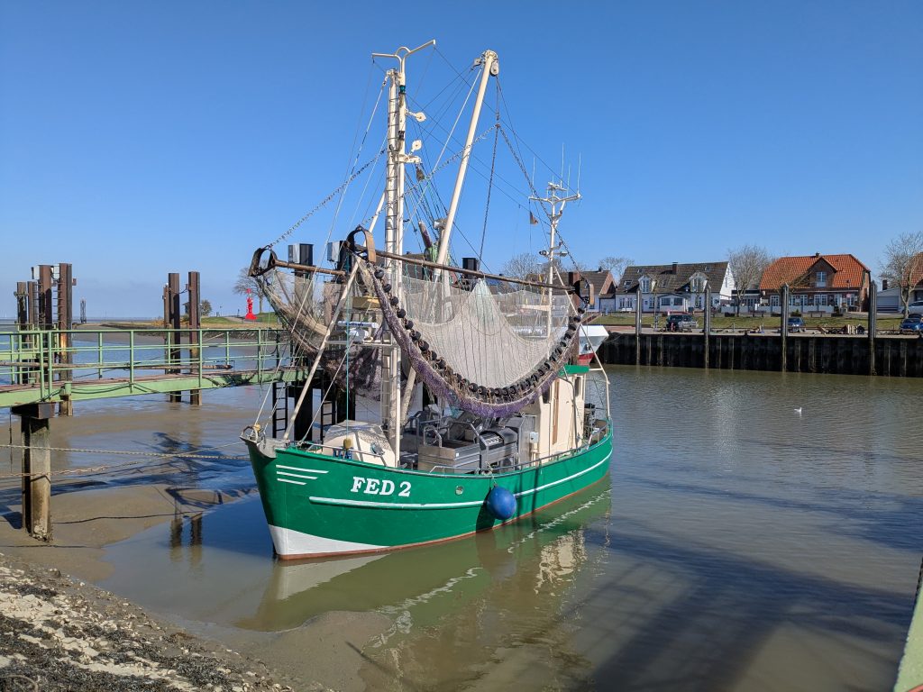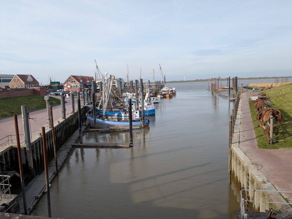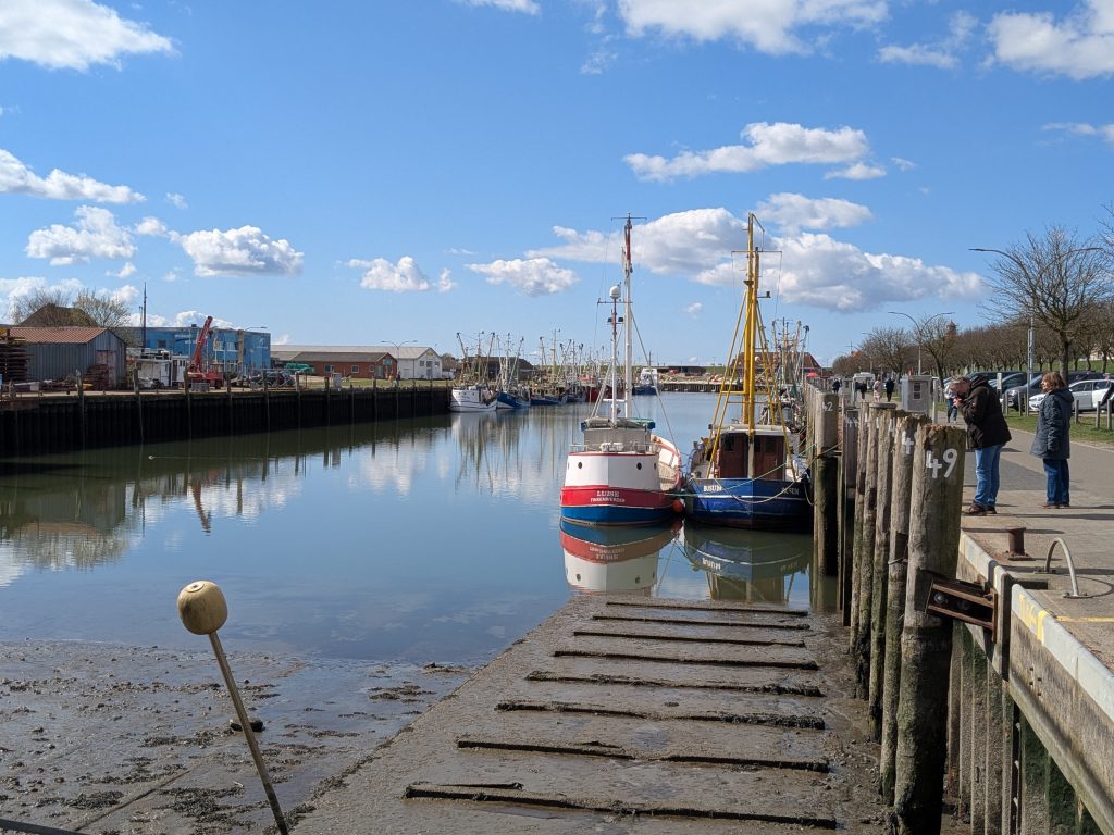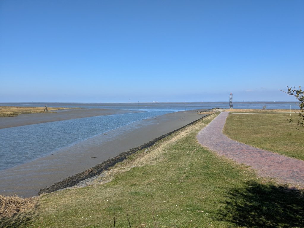 Der Tag beginnt etwas trübe, aber pünktlich zur Abfahrt kommt die Sonne durch, trotzdem bleibt es bei ca 10°C . Wir fahren auf Landstraßen Richtung Butjadingen. Unser Ziel ist der Stellplatz in Fedderwardersiel. In Burhave besichtigen wir noch fix einen Edeka, dann geht es die letzten Meter zum Stellplatz. 24,- inkl. Kurtaxe und Strom, plus 4,-/Pro Tag für den Lütten kostet das hier. Zum Mittag gibt es Fisch mit Pommes aus dem Butjadinger Fischfachgeschäft. Sehr lecker! Abgesehen von der Remouladen-Soße fast wie in England. Danach schwingen wir uns auf die Räder und genießen das Meer. Erstmal einen Labcache am Hafen, dann geht es am Deich lang. Unterwegs Kaffeepause mit frischem Espresso und „Auslauf“ für Drohnie. Dann geht es zurück und wir sind mal etwas faul und genießen den Abend im Wobi. Das Parkticket für den Lütten für den nächsten Tag bezahlen wir mit einer App, drucken den Screenshot aus und legen ihn ins Auto, wir haben keine Lust um 8 Uhr Geld in den Automaten zu werfen, da wollen wir noch schlafen!