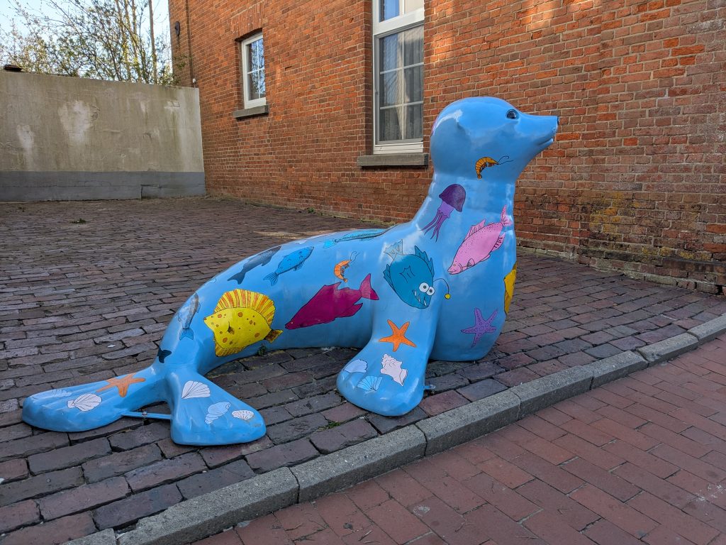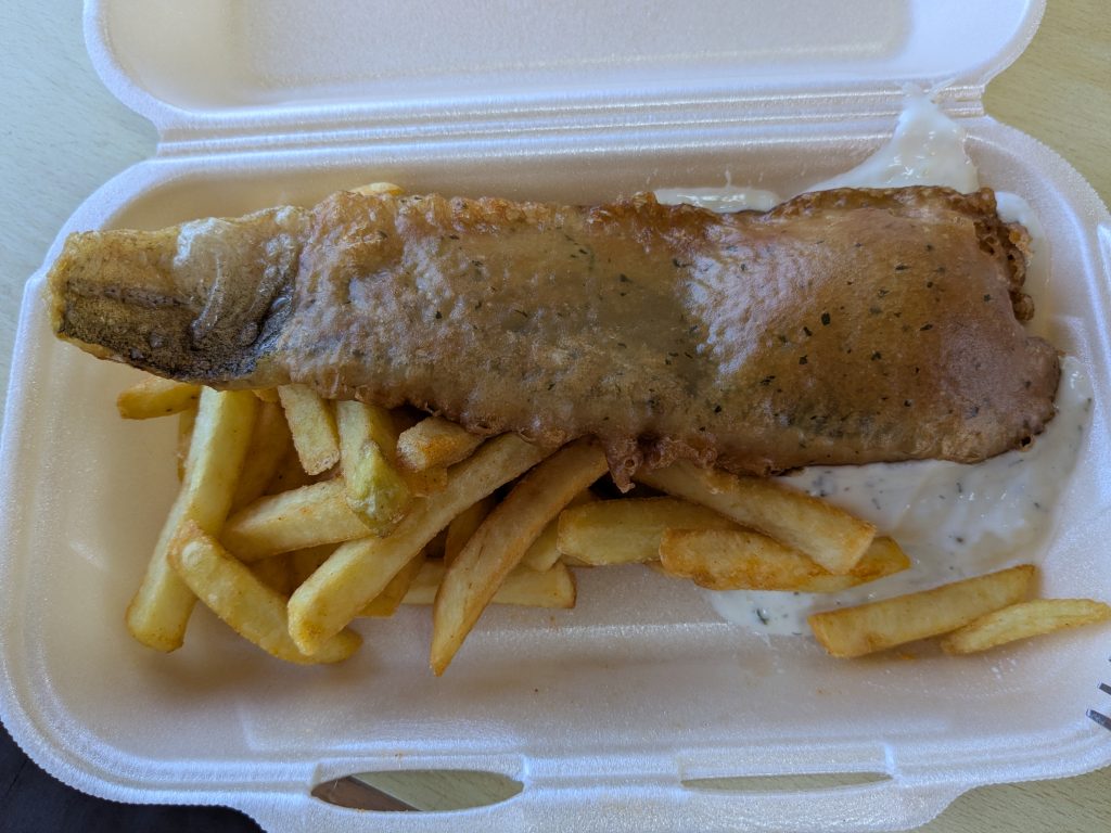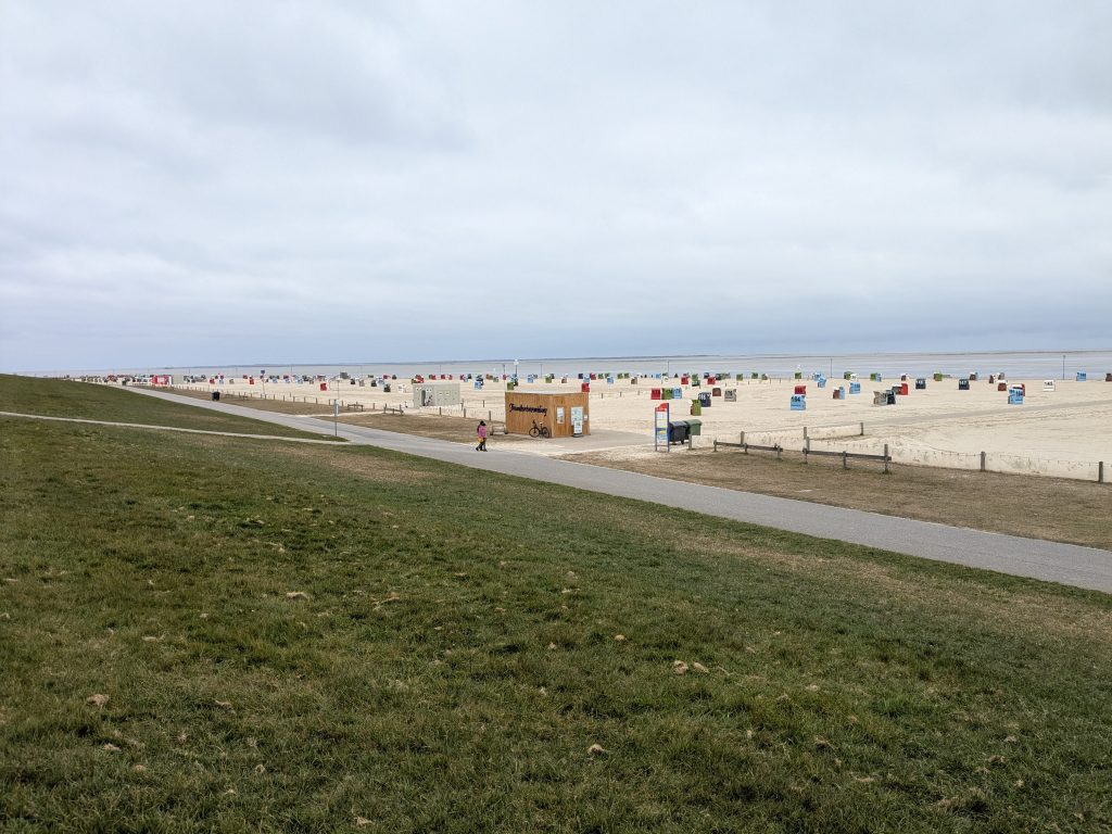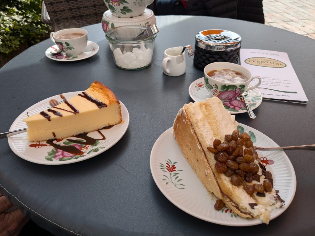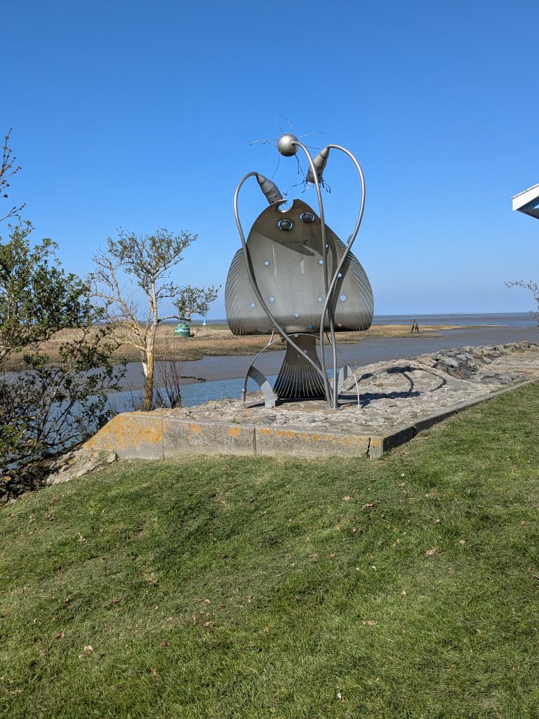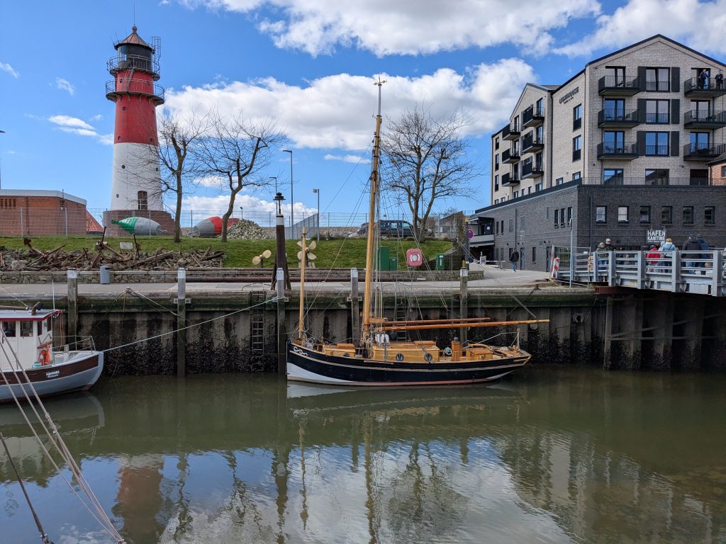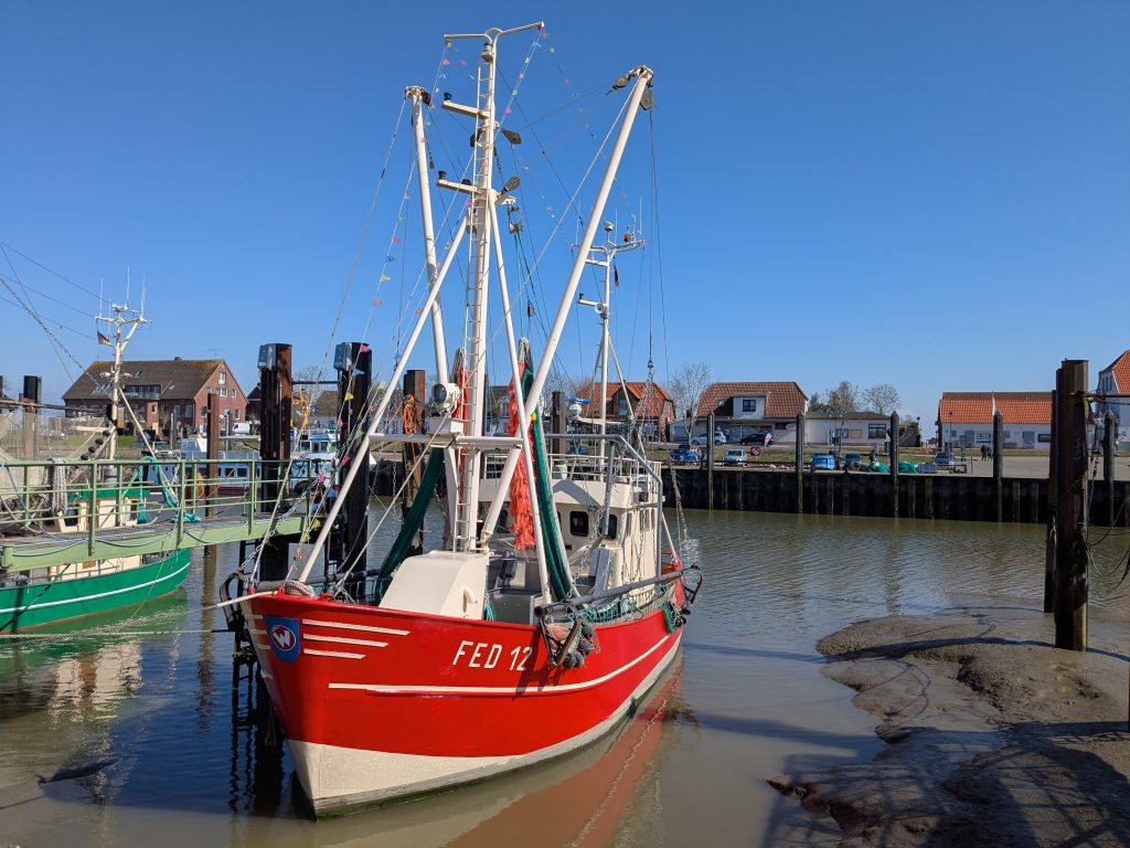Der Tag beginnt etwas trübe, aber pünktlich zur Abfahrt kommt die Sonne durch, trotzdem bleibt es bei ca 10°C . Wir fahren auf Landstraßen Richtung Butjadingen. Unser Ziel ist der Stellplatz in Fedderwardersiel. In Burhave besichtigen wir noch fix einen Edeka, dann geht es die letzten Meter zum Stellplatz. 24,- inkl. Kurtaxe und Strom, plus 4,-/Pro Tag für den Lütten kostet das hier. Zum Mittag gibt es Fisch mit Pommes aus dem Butjadinger Fischfachgeschäft. Sehr lecker! Abgesehen von der Remouladen-Soße fast wie in England. Danach schwingen wir uns auf die Räder und genießen das Meer. Erstmal einen Labcache am Hafen, dann geht es am Deich lang. Unterwegs Kaffeepause mit frischem Espresso und „Auslauf“ für Drohnie. Dann geht es zurück und wir sind mal etwas faul und genießen den Abend im Wobi. Das Parkticket für den Lütten für den nächsten Tag bezahlen wir mit einer App, drucken den Screenshot aus und legen ihn ins Auto, wir haben keine Lust um 8 Uhr Geld in den Automaten zu werfen, da wollen wir noch schlafen!
