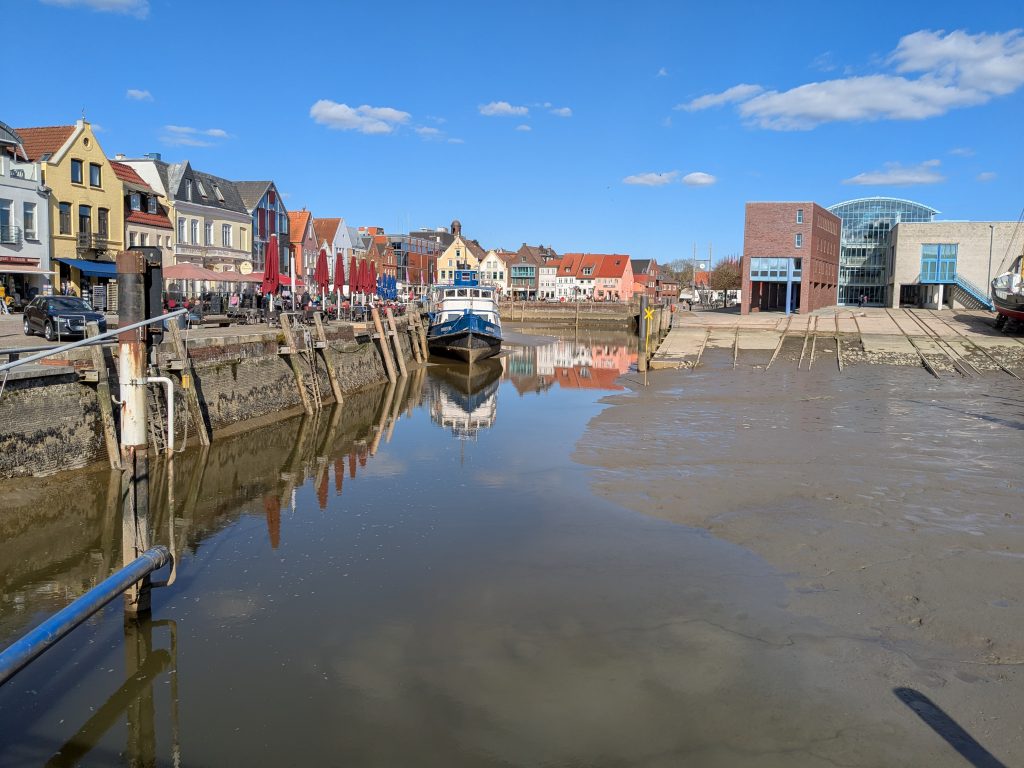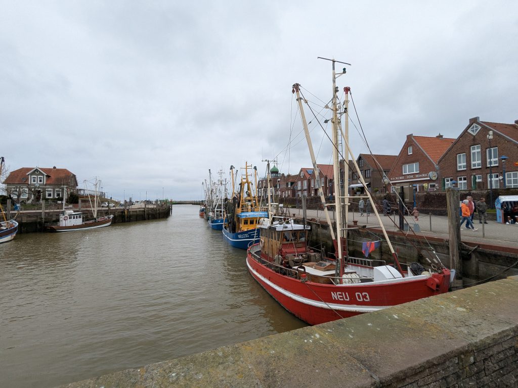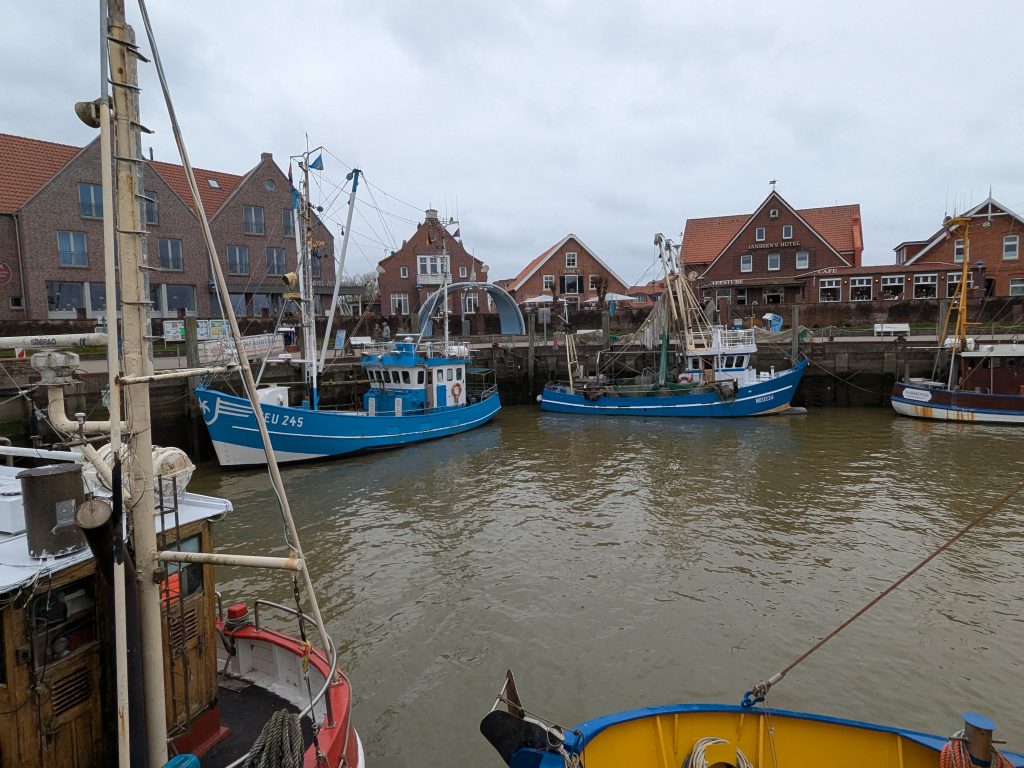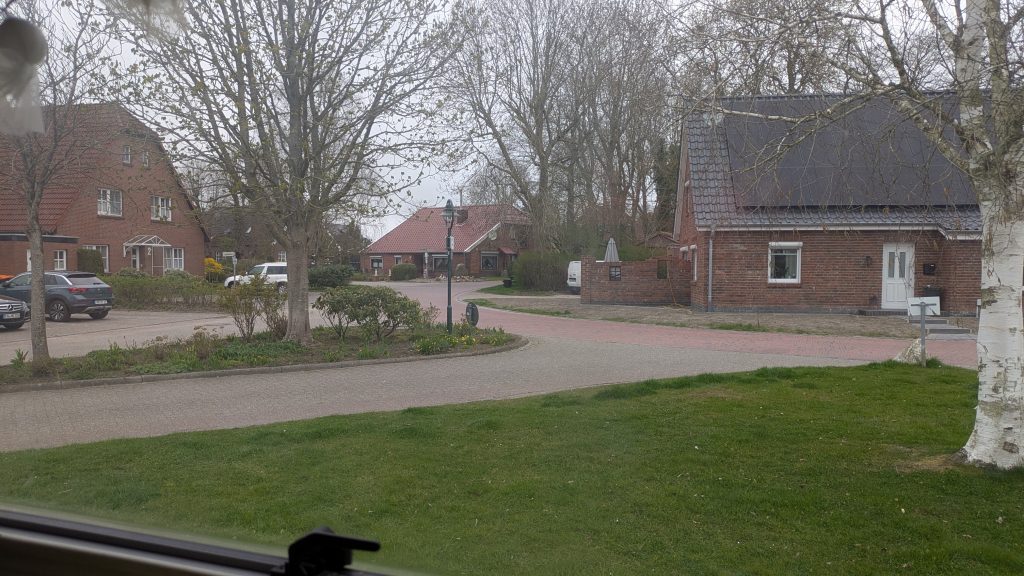 Nach dem Frühstück mit leckeren Aufbackbrötchen aus dem Omnia von Lidl geht es gegen 11:30 weiter nach Westen (mal wieder das Tracken nicht eingeschaltet, sind aussen herum gefahren). Den Stellplatz in Werdum haben wir uns ausgesucht, in der Hoffnung, dass es nicht direkt an der Küste nicht so voll ist. Und ja, um 14 Uhr sind wir alleine. Mittags gibt es Pommes aus dem Omnia und Bratwurst. Anmeldung in der Touristeninformation klappt, für 16 € inkl. Kurtaxe bleiben wir. Für 20 € Pfand gibt es den Schlüssel für Toi und Dusche, alles picobello neu und sauber. Kurios: für 50 Cent gibt es 1 kWh Strom, der 1 Euro kosten soll??? Der Ford darf hier auch kostenlos parken. Danach los nach Neuharlingersiel, kurzer Rundgang, weiter nach Carolinensiel, kurz den Museumshafen angeschaut. In Harlesiel haben wir gar nicht geparkt, das Wetter ist auch nicht so dolle. Zurück in Werdum den einzigen Labcache abgelaufen und ab ins warme Womo. Es sind noch 2 Nachbarn hinzugekommen. Beim Blick aus dem Fenster denkt man, mitten auf dem Dorfplatz zu stehen 😉 . Abends beginnt es noch zu regnen.