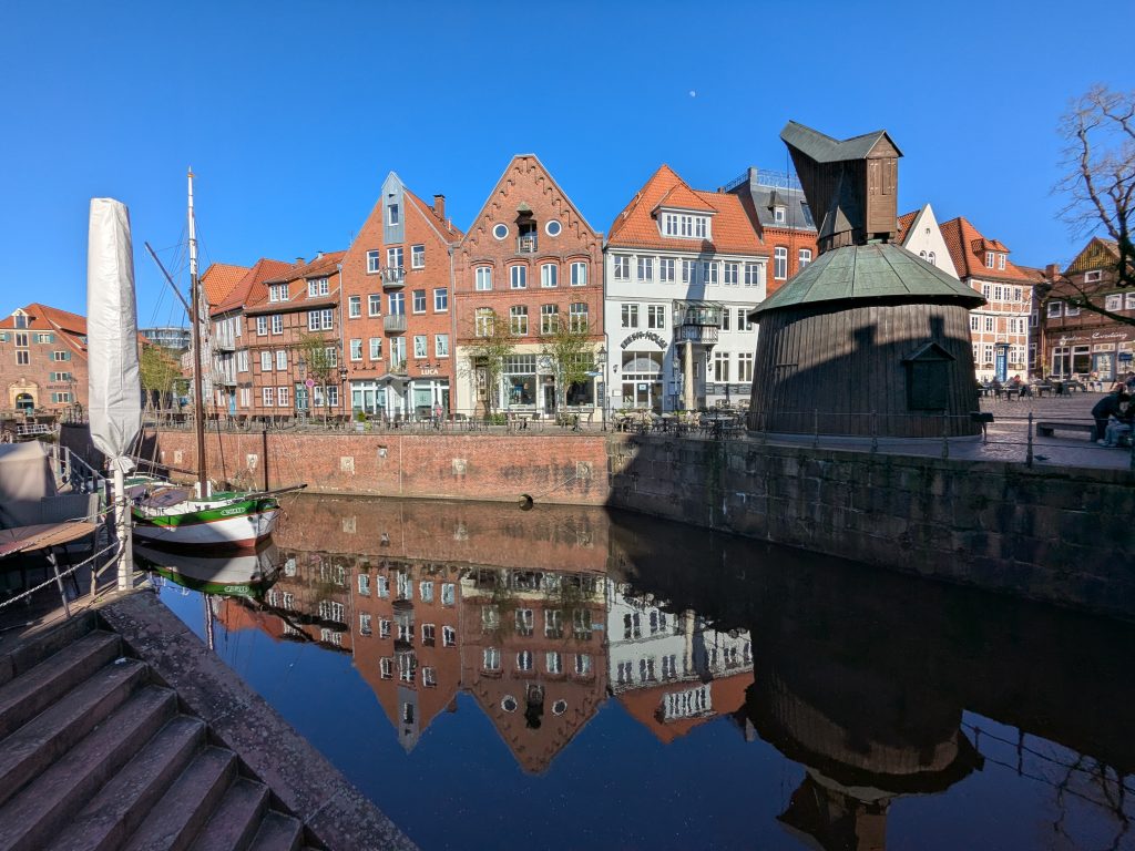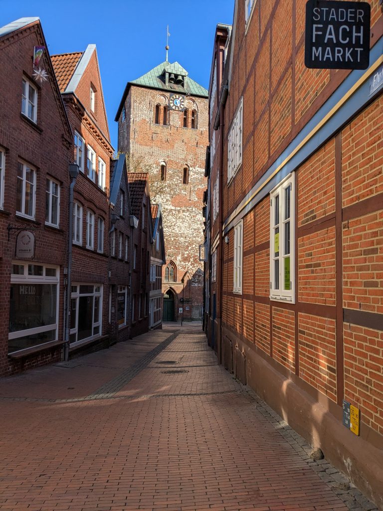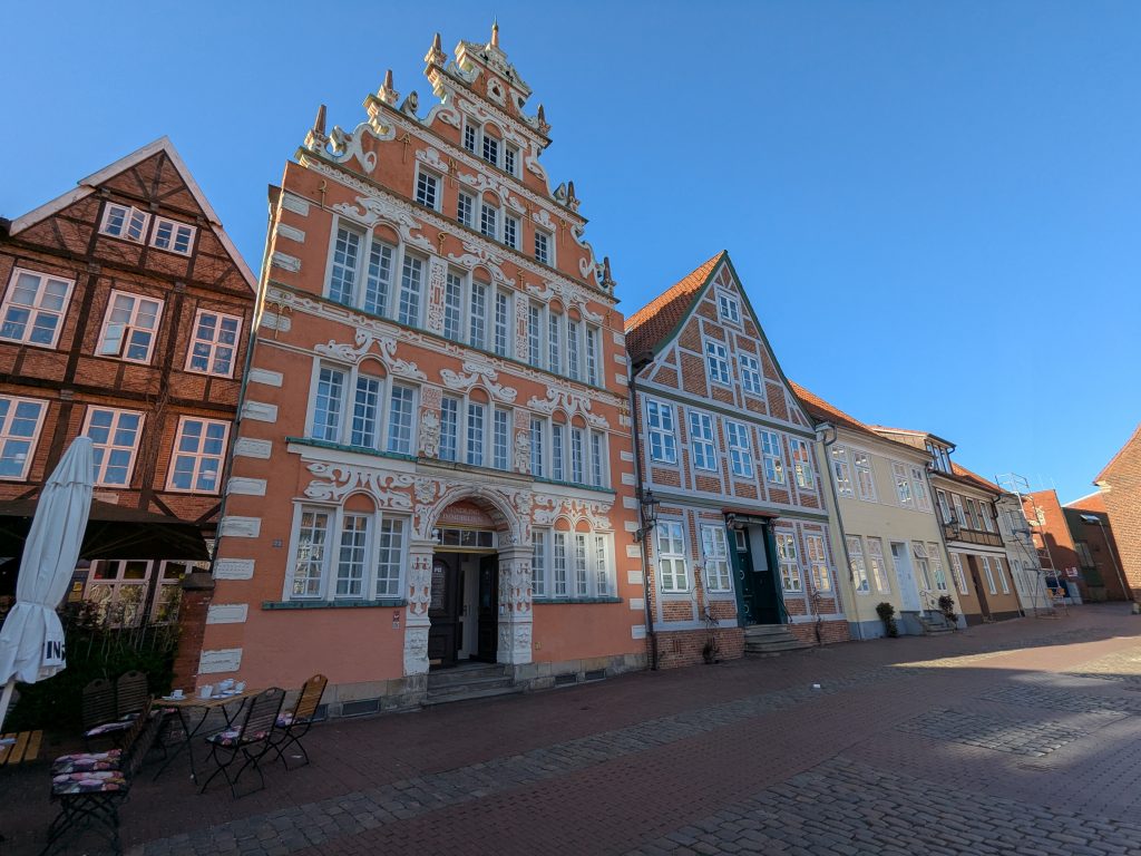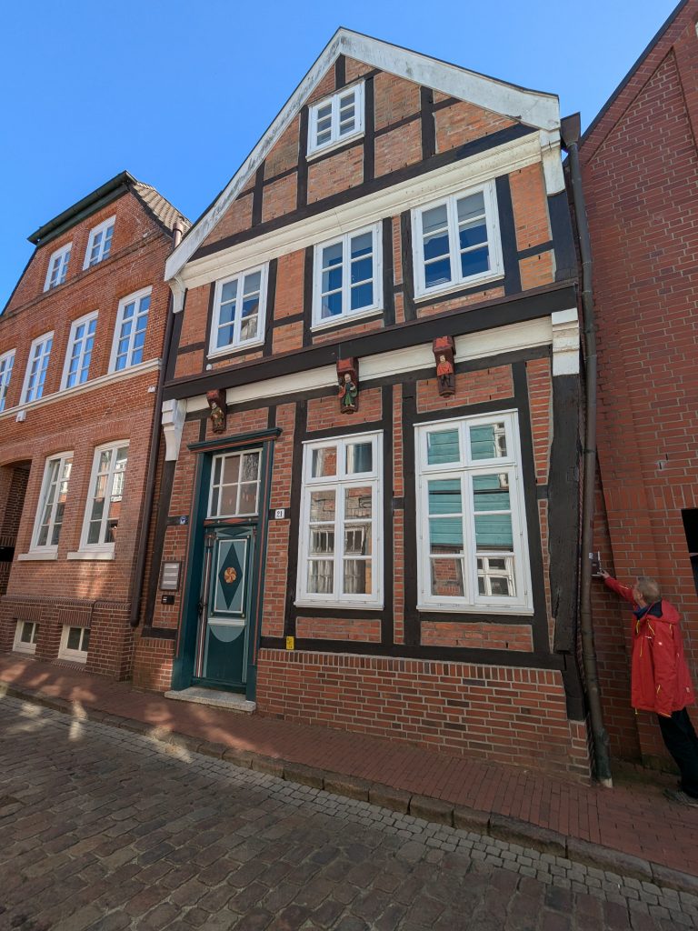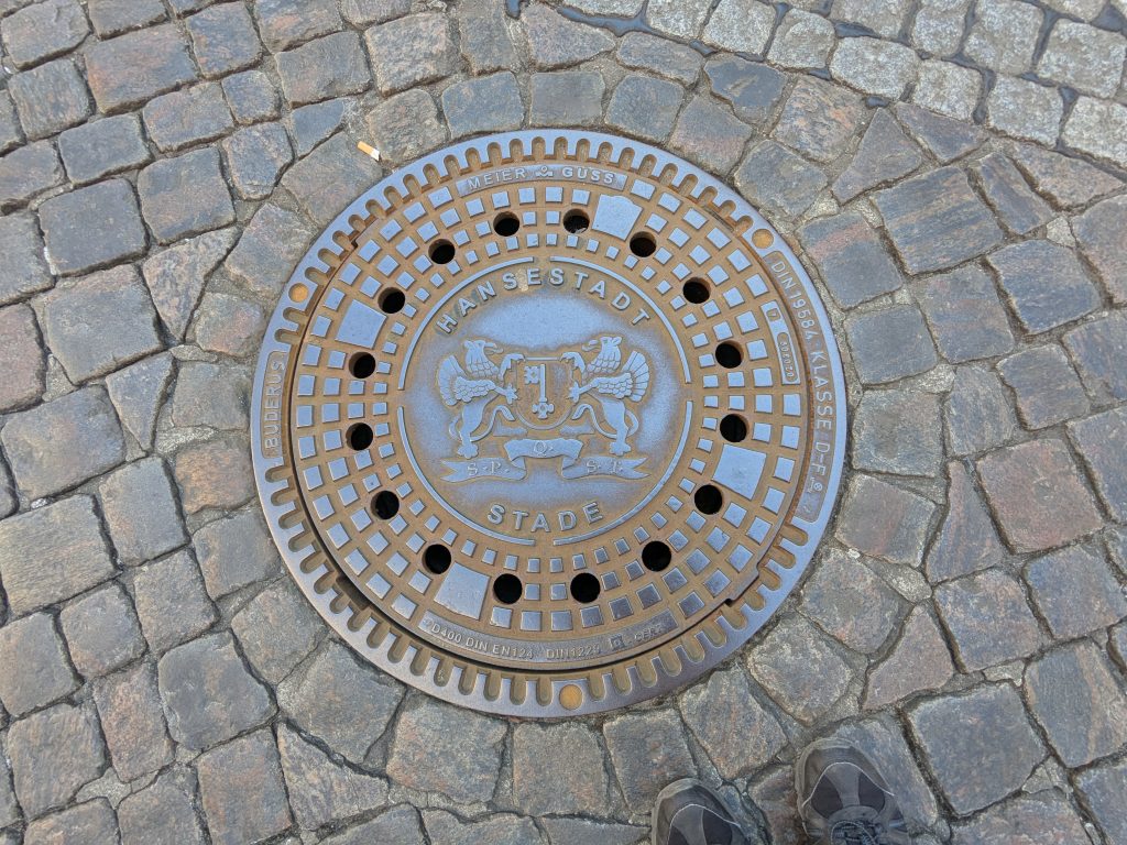Heute geht es weiter, gegen 11:30 verlassen wir frisch ver- und entsorgt den Stellplatz. Unser neues Ziel ist Stade, leider liegt dazwischen wieder die Elbe. Die Fähre Glückstadt-Wischhafen wäre naheliegend, dauert aber lange und ist auch nicht ganz billig. Also entscheiden wir uns für den Umweg über Hamburg. Böser Fehler, kurz vor der Baustelle vor dem Elbtunnel ist ein Unfall. Also dicker Stau vor dem Stau. Dumm gelaufen. Zum Glück waren wir bei Elmshorn noch tanken, 200,-€ und Chinanudeln später, stellen wir uns 1,5 Stunden in den Stau. Dann ist es geschafft. Wir fahren an der Elbe entlang Richtung Stade. Unterwegs treffen wir noch einen Beluga, keinen Wal aber einen Airbus. Kurz vor 16:00 ist es dann geschafft, wir sind auf dem Stellplatz in Stade. Für einen Montag ist das aber hier sehr gefüllt, viel ist nicht mehr frei, ca. 80 Plätze gibt es hier. Das Einchecken geht am Automaten ganz einfach. Auch die Brötchen bestellt man am Automaten! Einen Espresso danach geht es in die Altstadt. Hier finden wir ganz ohne Suchen den Bonus zu einer Labcacherunde. Leider fehlt uns die Labcacherunde. Also nur die schöne Arbeit bewundern, aber nicht loggen. Weiter geht’s zum alten Hansehafen. Hier gibt es lecker Fisch zum Abendessen und eine feine kleine Labcacherunde. Auch den Bonus hierzu können wir schnell finden. Leider wird es aber allmählich recht kühl und wir beschließen auf weitere Caches zu verzichten und den Abend im gut geheizten Wobi ausklingen zu lassen.