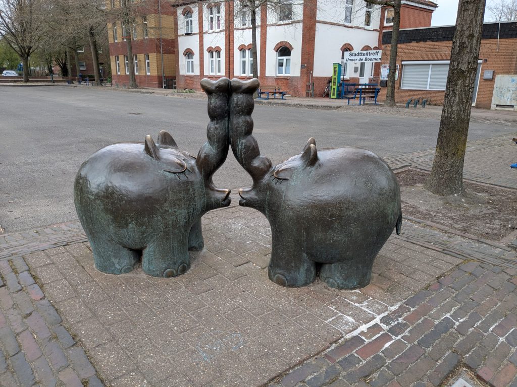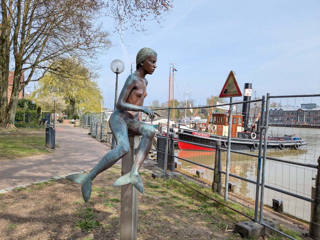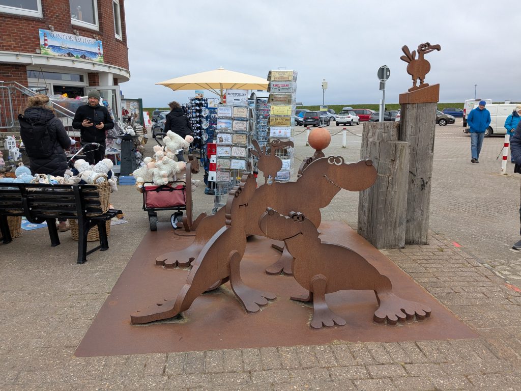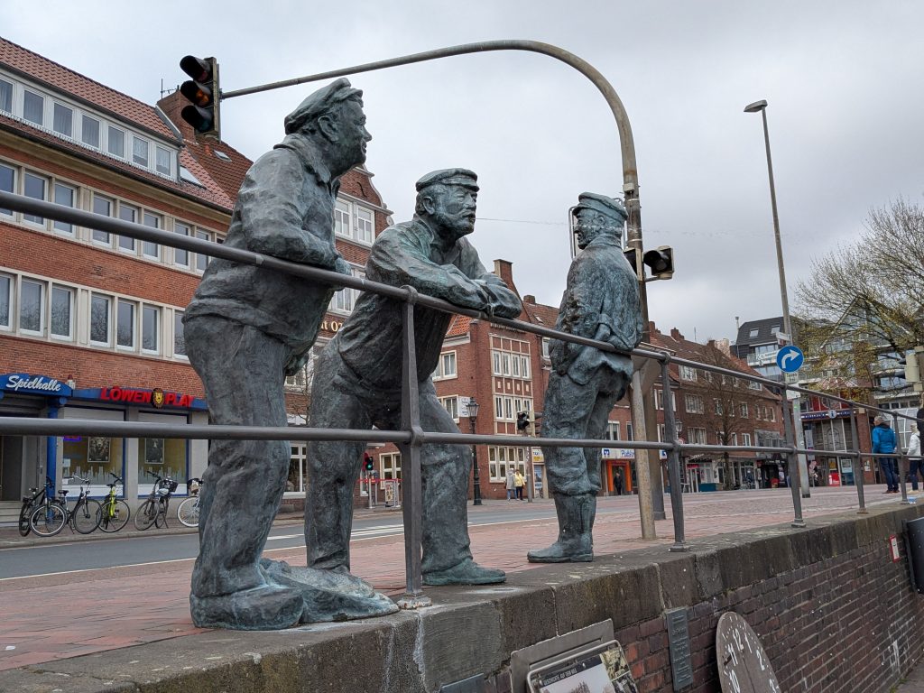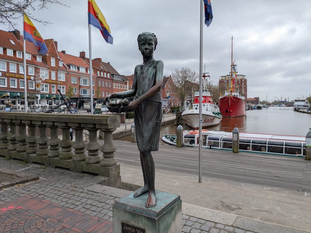 Nach dem Frühstück starten wir Richtung Emden. Als Nachtquartier haben wir uns den Stellplatz am „Großen Meer“ ausgesucht, von dort ist es nicht weit nach Emden und bestimmt ruhiger als am Jachthafen in der Stadt, der auch voll belegt ist. Auf dem Weg müssen wir noch kurz Tanken. Ist heute ganz günstig, Diesel, Benzin und LPG für nur 150,-€. Der Kassierer wundert sich zwar, dass Ralf die 5, LPG und die 6 bezahlen will, aber Ralf erklärt ihm, dass die Saufziege auch dazu gehört. Das führt dann zu neuer Verwirrung, weil er mich Saufziege nennt. Erst als er erklärt, das die Saufziege das Auto ist, ist wieder alles gut. In Emden finden wir dann sogar einen Parkplatz direkt am Hafen für lau. Nächster Stopp, Backfisch mit Pommes bei Bittners Fischspezialitäten. Super lecker, aber viel zu viel. Dann wollen wir den Labcache am Stadtmodell machen, geht nicht, ist von anderen cachern belegt. Also weiter zu den „Emder Heringen“. Hier wollen wir gerade loslegen, als die Stadtmodell Cacher ankommen. Also zurück zum Stadtmodell. Der ist schnell absolviert. Am Delft lang geht es den „Heringen“ auf die Spur. An der zweiten Station haben wir wieder die anderen Cacher vor der Nase. Mist, also begeben wir uns erstmal auf „Ottos Spuren“, hier bemerken wir irgendwann, dass zwei der Stationen weit ab liegen, also zurück zu den „Heringen“. Der ist dann auch recht schnell geschafft. Ab zum Auto und zu den beiden letzten Stationen der Otto Runde. Danach geht es zurück zum Stellplatz, ach nein, erstmal zu Lidl und dann zum „schiefen Turm von Suurhusen“ der ist schiefer als der in Pisa. Hier absolvieren wir die 4. Labrunde, bevor es wirklich zum Womo geht. Über 8000 Schritte sind wir schon gelaufen, als ich auf die blöde Idee komme, man könnte ja noch mal eben schnell die Runde „Urlaub am großen Meer“ machen. Ist auch wirklich schön, vor allem schön weit. So kommt es, dass wir schließlich gegen 20:00, nach insgesamt 14672 Schritten, endlich aufs Sofa sinken. Der Stellplatz kostet 18 Euro + Strom, modernes Kartensystem, man kann sich sogar am Terminal für den daneben liegenden Campingplatz registrieren. Im „Haus am Meer“ nebenan gibt es Waschmaschinen, Duschen, Toiletten, ist alles mit der Chipkarte vom Stellplatz zu bezahlen. Hier ist relativ viel Platz und alle stehen mit grossem Abstand zueinander. Direkt daneben ist PKW-Parkplatz für den Lütten. Ein Ticket bis Mittag ist schon gelöst. Ach ja, das Bezahlen mit der App in Fedderwardersiel war richtig teuer, 5,75 € Gebühr in der App plus die 4 € Parkgebühr, machen wir nicht wieder!!!