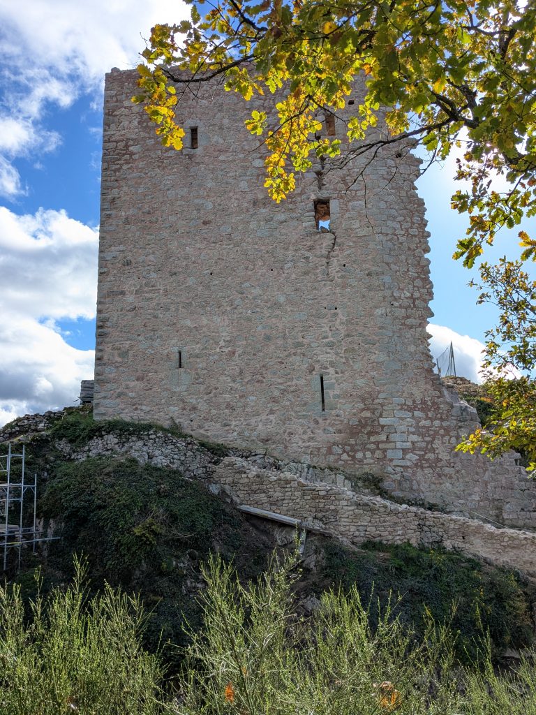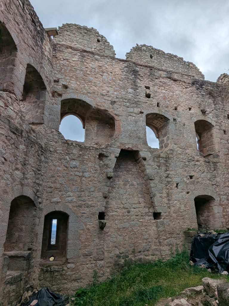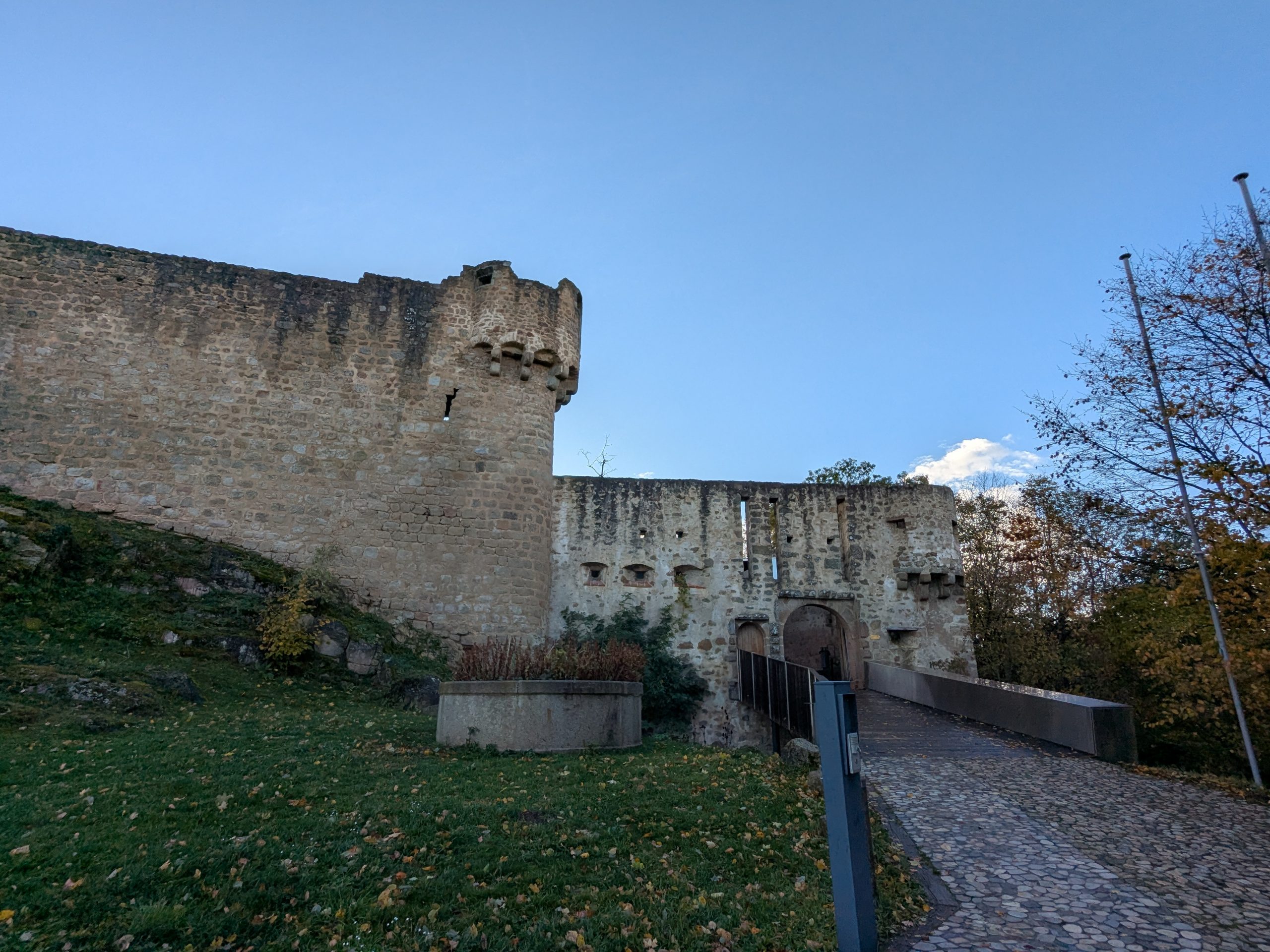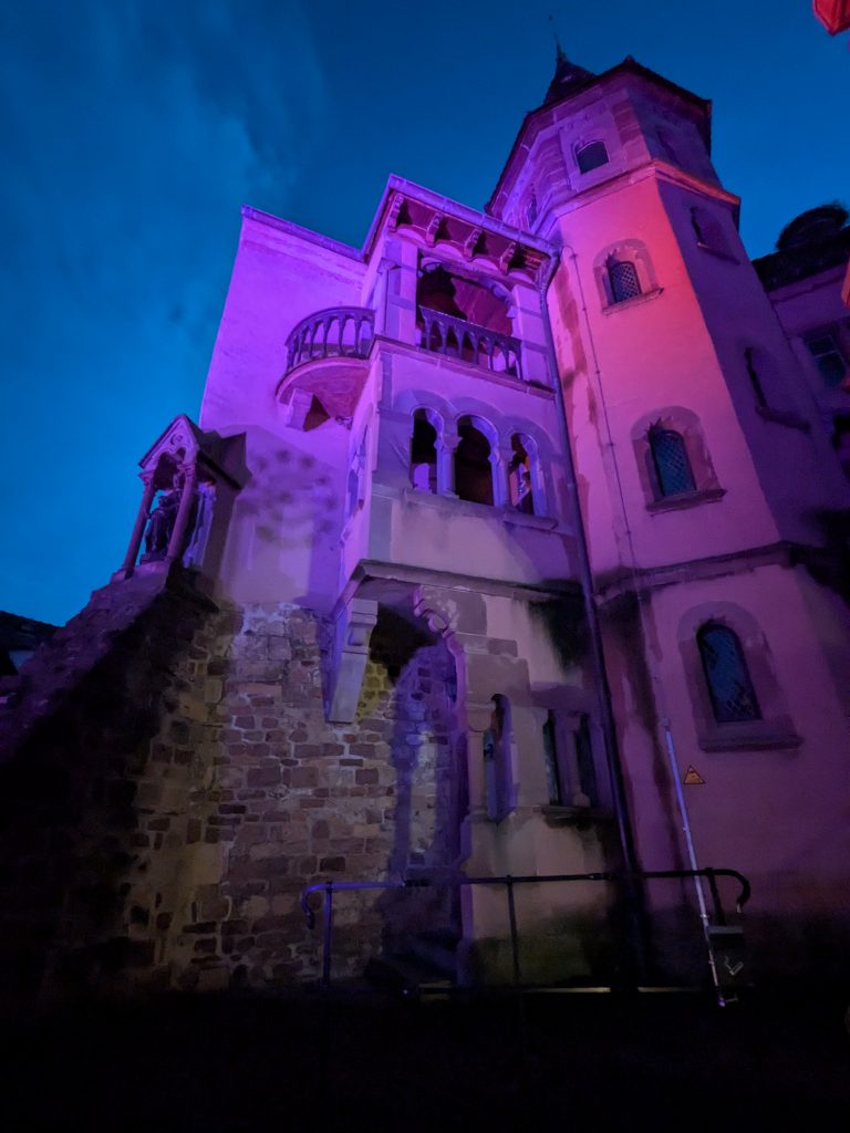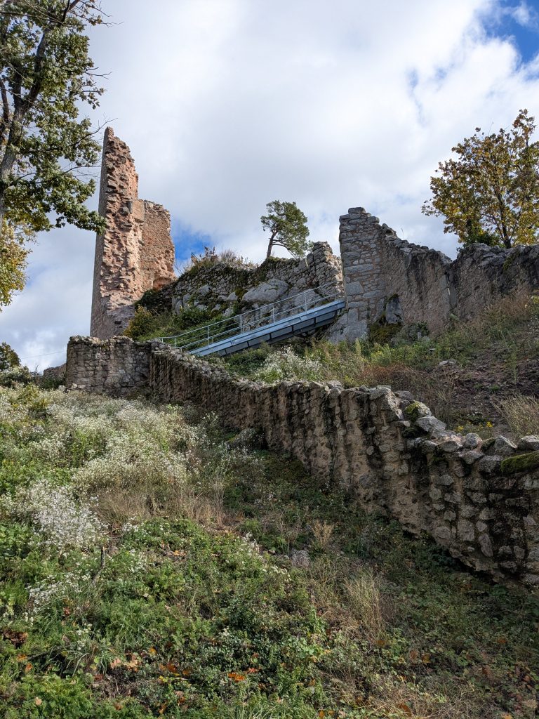 Die Nacht war herrlich ruhig und wir haben lange geschlafen. Um 10:00 Uhr hat sich Ralf aus dem Bett gekegelt. Um 12:00 starten wir nach Graufthal, um dort die Felsenhäuser zu besichtigen. Pünktlich zum Start, setzt der Regen ein 🙁 Trotzdem ist die Besichtigung sehr interessant. Bis 1958 hat hier die letzte Bewohnerin, Catherina Ottermann, ohne Wasser und Strom gelebt. Zum Teil lebten hier Familien mit 6 bis 10 Kindern und ihren Ziegen in den kleinen Häuschen. Nach dem Tod von Catherina verfielen die Häuser und würden ab 1985 originalgetreu nach alten Fotos restauriert. Nach der Besichtigung starten wir trotz Regen zum Chateau Lichtenberg. Hier gibt es wegen des Regens erst einmal Espresso im Häuschen der Bushaltestelle. Punkt 14:30 hört der Regen, wie von der App vorhergesagt, auf und wir stapfen mal wieder einen Berg hoch zum Chateau. Hier ist leider Halloween ausgebrochen und überall treiben sich verkleidete Kinder (und Erwachsene) rum. Wir lassen uns aber nicht abschrecken, auch wenn wir für die schlechte Halloween-Deko 2€ mehr Eintritt zahlen müssen. (10€ anstatt 8€/Pers.) Dafür gibt es aber eine grandiose Aussicht. Nach 1,5 Stunden haben wir alles besichtigt und es geht zurück zum Campingplatz, vorher drehen wir noch eine kurze Runde durch Niederbronn. Fazit, nicht wirklich sehenswert. Also ab zum Wobi.