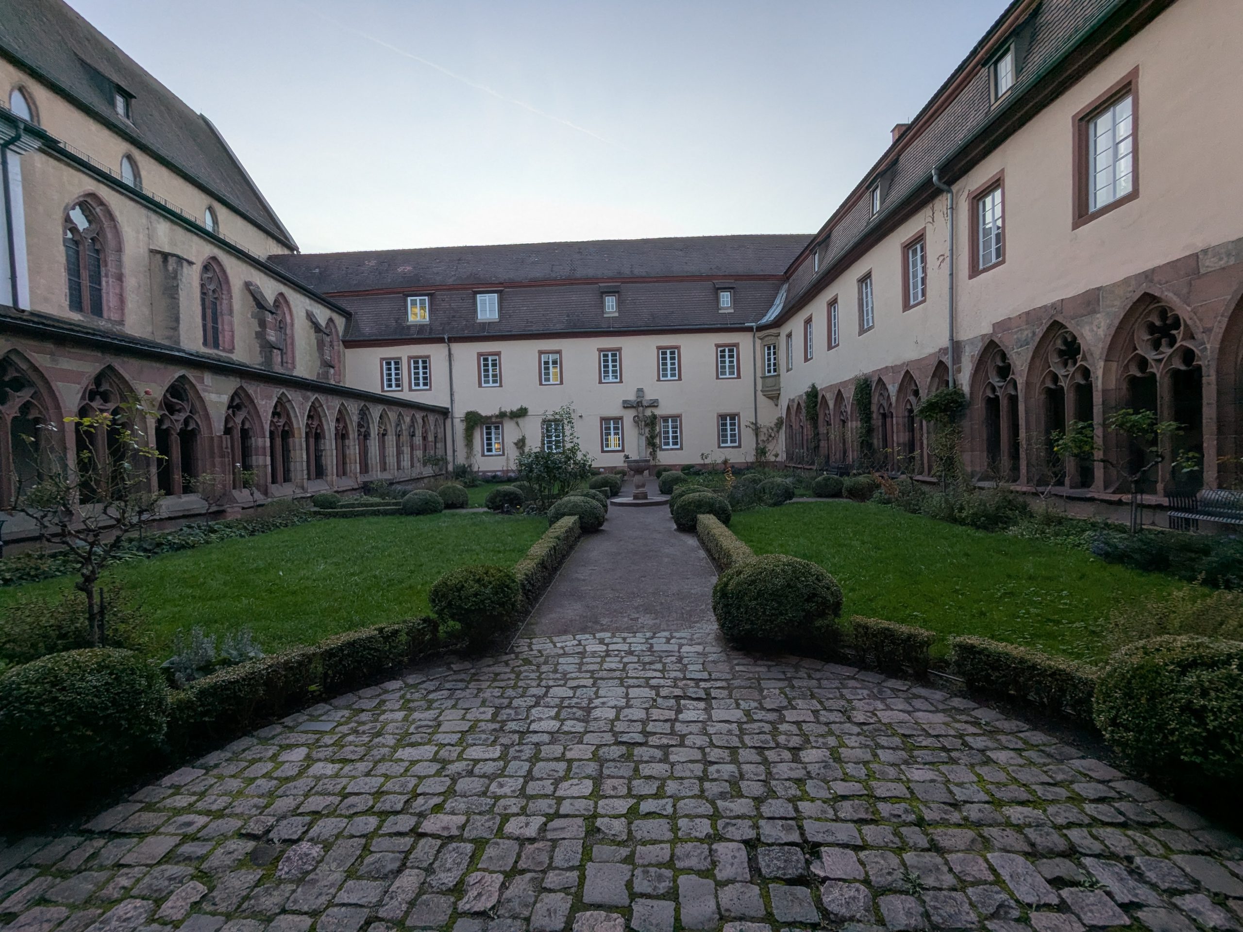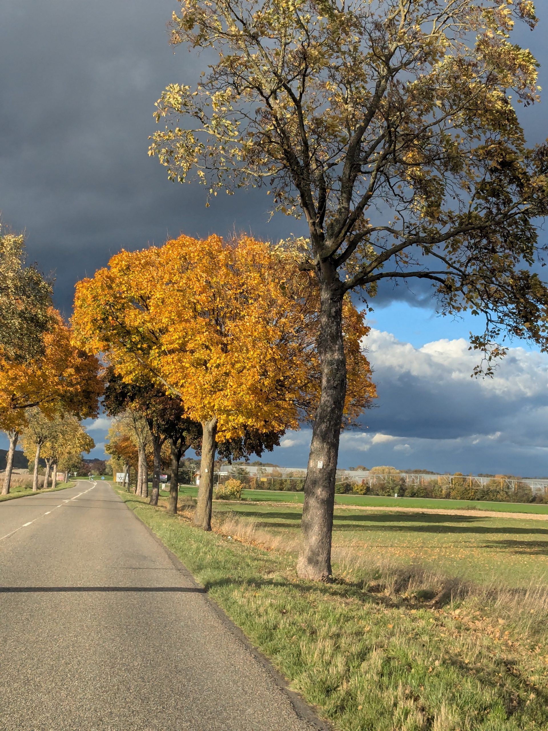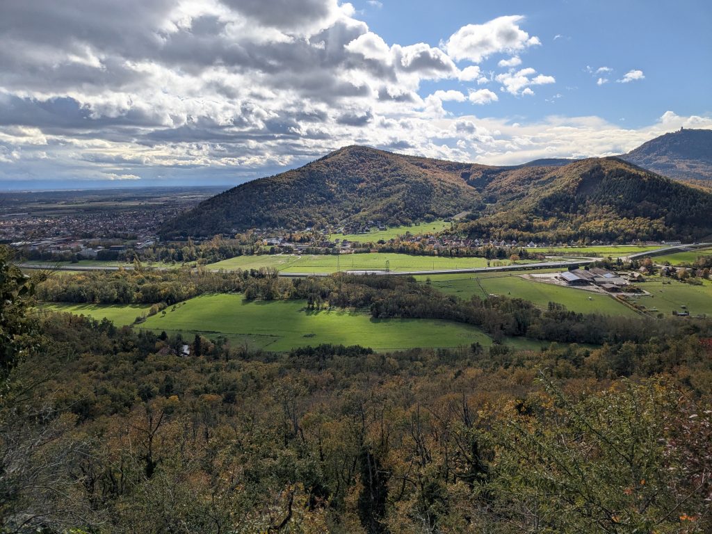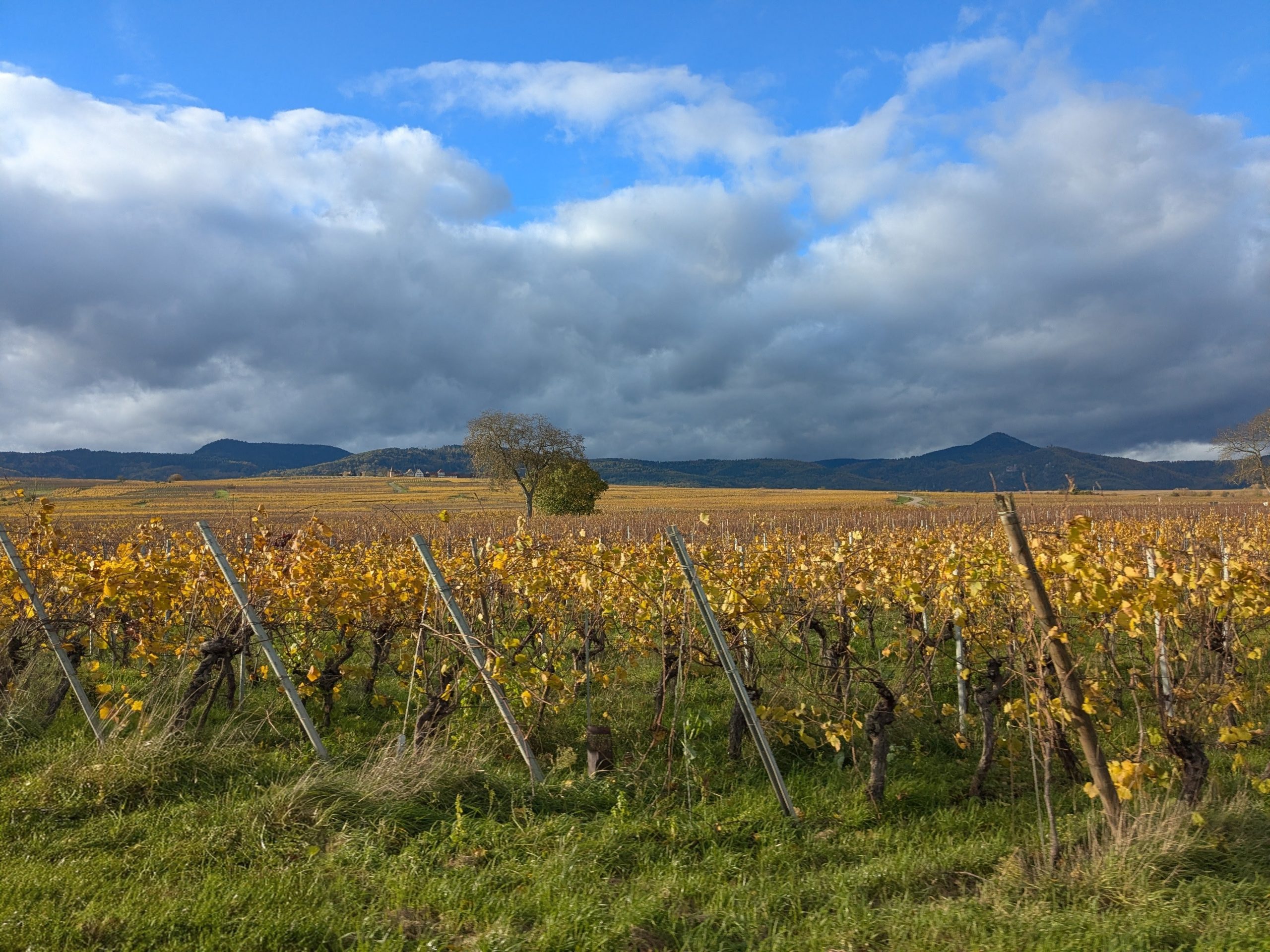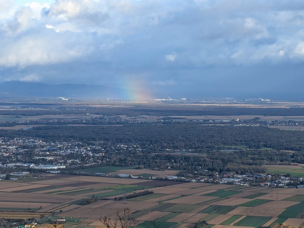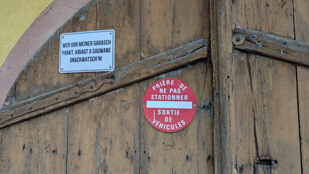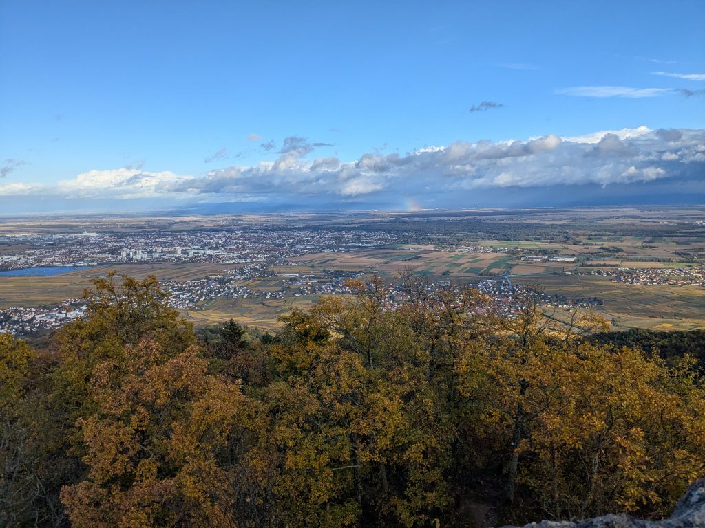 Heute ist Abreise, wir wollen ganz gemächlich wieder Richtung Heimat aufbrechen. Ralf bekommt von den ganzen niedlichen Dörfern hier Sodbrennen. 😉 und wir wollen uns auch evtl. noch mit Larissa in Wiesbaden treffen. Also klingelt der Wecker um 8:00. Ich bin aber schon vorher wach und werde mit super Morgenstimmung begrüßt. Um 10:30 Uhr starten wir dann. Erstmal wieder zur Raststätte Haut Koenigsbourg, Gas und Benzin tanken. Dann noch schnell den Bongo entleeren. Das haben wir bei der Entsorgung auf dem Campingplatz vergessen. Als nächstes gibt es ein Problem mit der Route. Google will uns partout über die Stadtautobahn durch Straßburg schicken. Dürfen wir aber ohne Crit’Air-Vignette nicht. Als ganz old school aufpassen und die richtige Autobahn nehmen. Gleich darauf wissen wir auch wo das Problem lag. Die Autobahn die wir nehmen dürfen (A355) kostet Maut und wir hatten Maut vermeiden eingeschaltet. Dann erreichen wir die Grenze und damit die Zollkontrolle! Ja, es gibt sie wieder, es lebe Europa 🙁 und kaum zurück in Deutschland haben wir endlich wieder einen Stau! Wie haben wir das vermisst. Bei Rhodt unter Riedburg finden wir einen Stellplatz ohne Alles, dafür mit Aussicht direkt in den Weinbergen. Es kostet 10 Euro, bezahlen wir per App PayByPhone. 2022 haben wir hier schon auf einem anderen Platz übernachtet, deshalb geht es auch gleich zum Chinesen in Edenkoben, den wir bereits kennen. Danach starten wir nach Landau in der Pfalz. Hier geht verkehrstechnisch gar nichts, aber irgendwann haben wir den Dicken geparkt und laufen los, um ein paar Labcaches zu machen. Es gibt zwar ein paar ganz nette Momente, aber im Großen und Ganzen: Landau kann man machen, muss man aber nicht. Eine Altstadt gibt es nicht so wirklich, ist wohl bei einem Großbrand 1689 abgefackelt. Also, ab zum Wobi, relaxen und schmökern durch den neuen „Asterix in Lusitanien“ 😉 .
