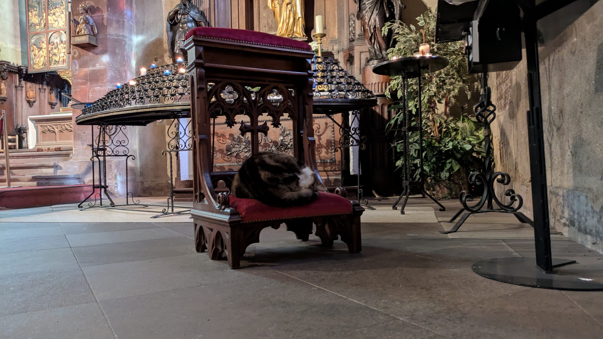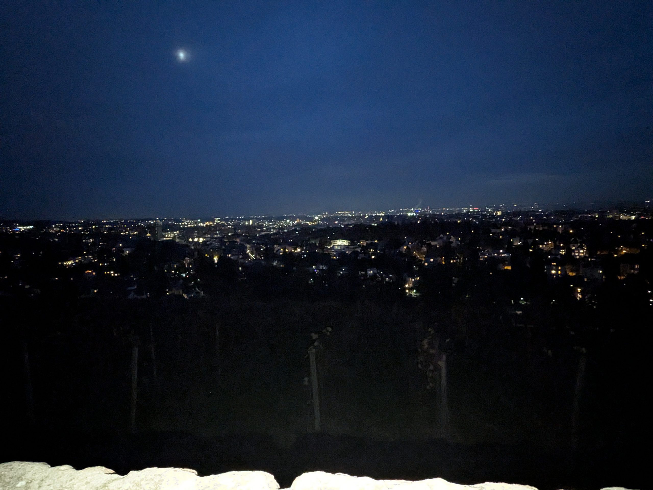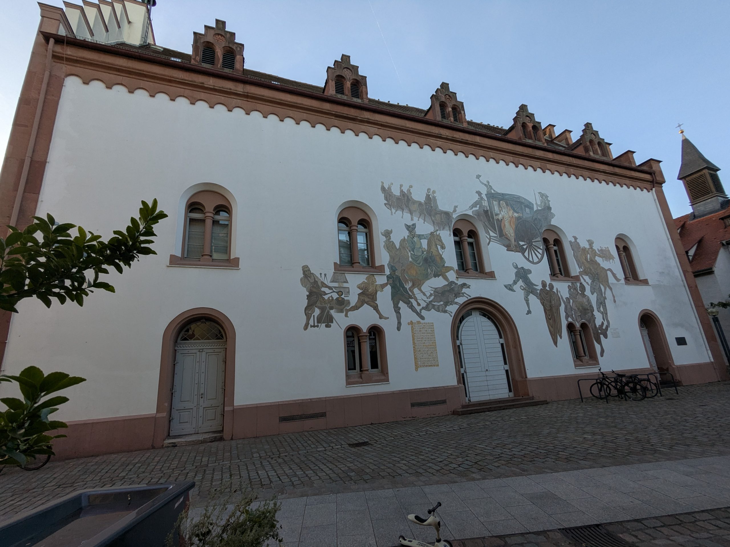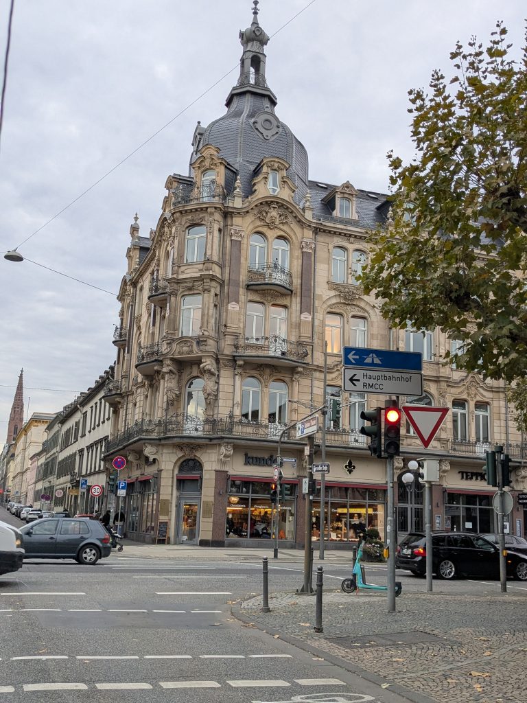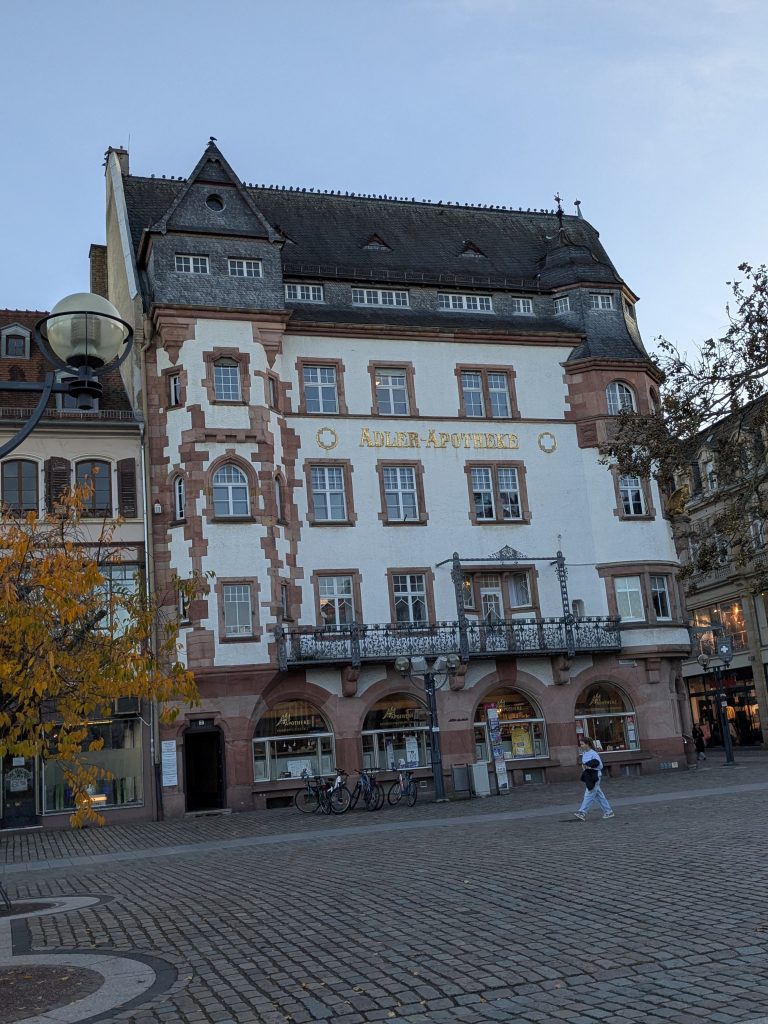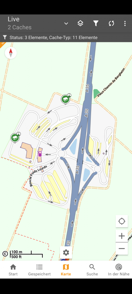 Heute ist Abreise, wir wollen ganz gemächlich wieder Richtung Heimat aufbrechen. Ralf bekommt von den ganzen niedlichen Dörfern hier Sodbrennen. 😉 und wir wollen uns auch evtl. noch mit Larissa in Wiesbaden treffen. Also klingelt der Wecker um 8:00. Ich bin aber schon vorher wach und werde mit super Morgenstimmung begrüßt. Um 10:30 Uhr starten wir dann. Erstmal wieder zur Raststätte Haut Koenigsbourg, Gas und Benzin tanken. Dann noch schnell den Bongo entleeren. Das haben wir bei der Entsorgung auf dem Campingplatz vergessen. Als nächstes gibt es ein Problem mit der Route. Google will uns partout über die Stadtautobahn durch Straßburg schicken. Dürfen wir aber ohne Crit’Air-Vignette nicht. Als ganz old school aufpassen und die richtige Autobahn nehmen. Gleich darauf wissen wir auch wo das Problem lag. Die Autobahn die wir nehmen dürfen (A355) kostet Maut und wir hatten Maut vermeiden eingeschaltet. Dann erreichen wir die Grenze und damit die Zollkontrolle! Ja, es gibt sie wieder, es lebe Europa 🙁 und kaum zurück in Deutschland haben wir endlich wieder einen Stau! Wie haben wir das vermisst. Bei Rhodt unter Riedburg finden wir einen Stellplatz ohne Alles, dafür mit Aussicht direkt in den Weinbergen. Es kostet 10 Euro, bezahlen wir per App PayByPhone. 2022 haben wir hier schon auf einem anderen Platz übernachtet, deshalb geht es auch gleich zum Chinesen in Edenkoben, den wir bereits kennen. Danach starten wir nach Landau in der Pfalz. Hier geht verkehrstechnisch gar nichts, aber irgendwann haben wir den Dicken geparkt und laufen los, um ein paar Labcaches zu machen. Es gibt zwar ein paar ganz nette Momente, aber im Großen und Ganzen: Landau kann man machen, muss man aber nicht. Eine Altstadt gibt es nicht so wirklich, ist wohl bei einem Großbrand 1689 abgefackelt. Also, ab zum Wobi, relaxen und schmökern durch den neuen „Asterix in Lusitanien“ 😉 .