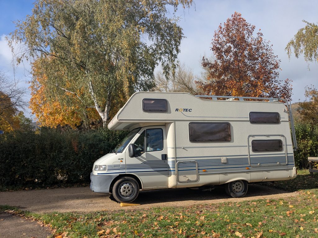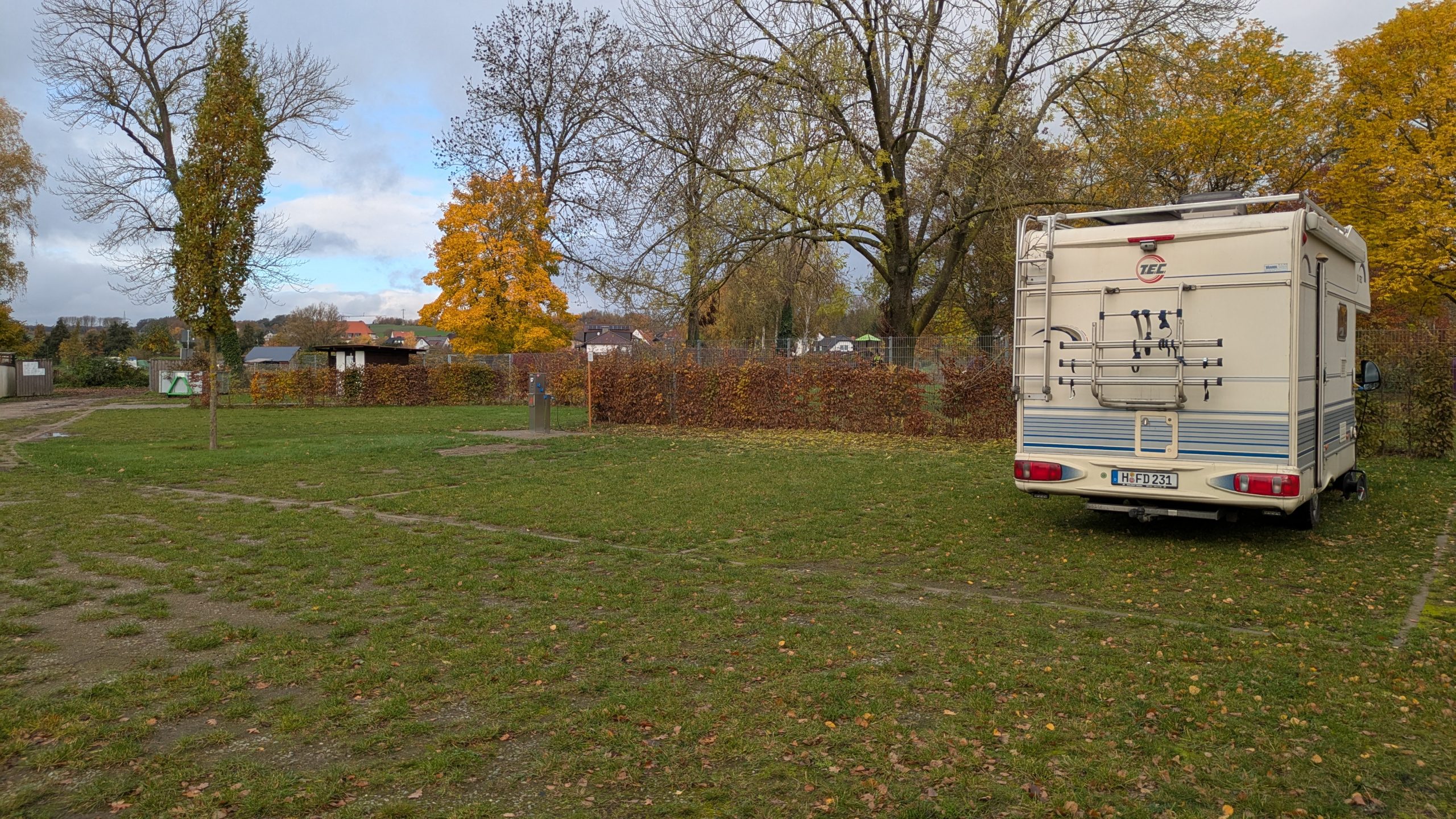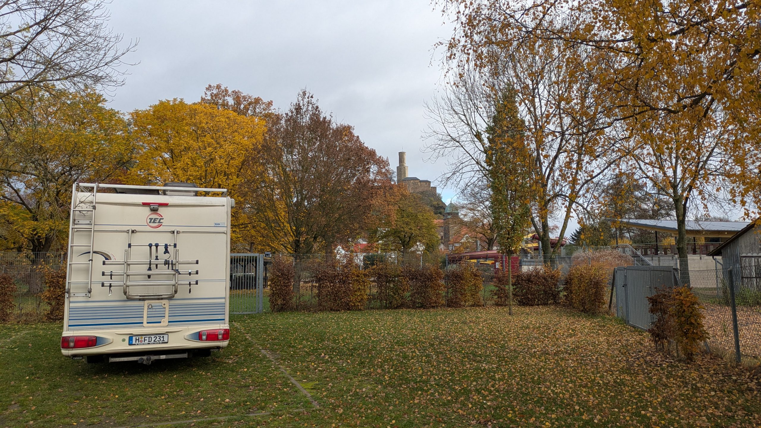 Die Nacht war ruhig, nur der Wecker um 8:00 stört die Idylle. Hilft nichts, wir sind nachher in Wiesbaden mit Larissa verabredet. Ein Schlafplätzchen ist schnell online in Eppstein (2 Dörfer neben Larissas) gebucht. Ganz entspannt geht es über die Autobahn nach Niedernhausen. Hier gibt es einen Mittags-Döner, bevor wir kurz nach 14:00 im Projekt Eppstein einchecken. Der Empfang ist super nett, der Platz schön am Berg gelegen, die Plätze terassiert, leider ist unserer ganz oben. Google würde den Weg „größtenteils flach“ nennen ?. Es geht jedenfalls gut bergan, ca. 65 Höhenmeter. Wohnwagen werden hier grundsätzlich mit dem Trecker hochgezogen. Dafür ist die Aussicht gut und der Stellplatz (38 €) hat sogar eine Gepflasterte Ecke für die Tür. Die Sanies sind neu und super sauber. Also nichts zu meckern, außer dass wir nachher den ganzen Berg wieder hoch laufen müssen. Der Dicke parkt unten vor dem Platz. Um 17:00 sammeln wir Larissa vor dem Statistischen Bundesamt in Wiesbaden ein und fahren zur Nerobergbahn. Die ist von 1888 und total niedlich. Gemütlich geht es den Berg 438 m hoch. Oben gibt es einen Pseudotempel, eine russisch orthodoxe Kirche und eine schöne Aussicht auf Wiesbaden. Dann wieder bergab, und ab zum Inder. Auf der Rückfahrt treffen wir jede Menge Monster, Zombies, Geister und was sich sonst noch so an Halloween herumtreibt. Ist echt viel hier, wir waren die letzten Jahre immer irgendwo im nirgendwo, keine Ahnung was so in Hannover ab geht. Auf der Landstraße hat es dann auf der Gegenspur noch ein Wildschwein erwischt. Und dann noch der blöde Berg. Wir sind jedenfalls heilfroh, als wir endlich im Wobi auf dem Sofa sitzen.