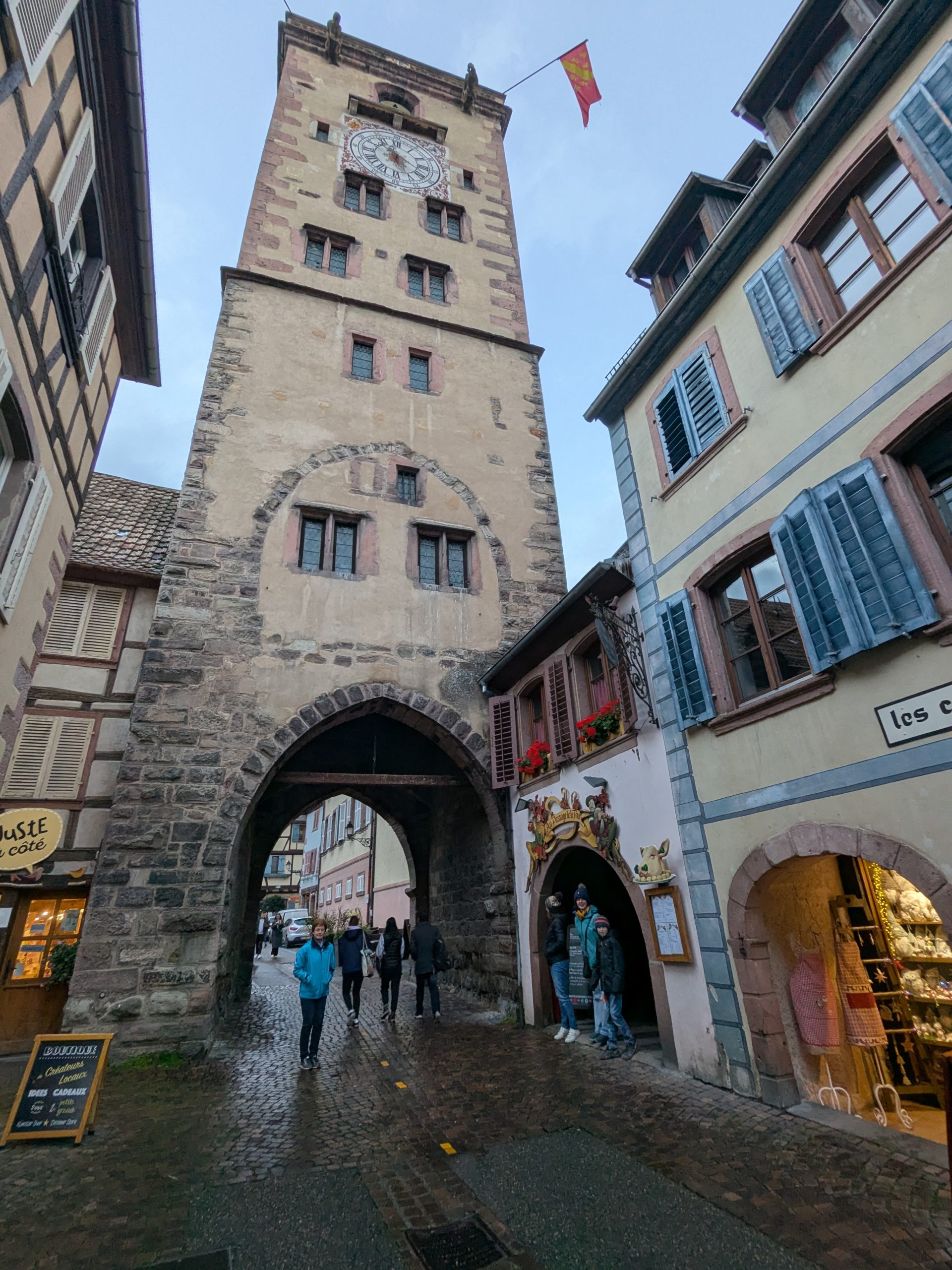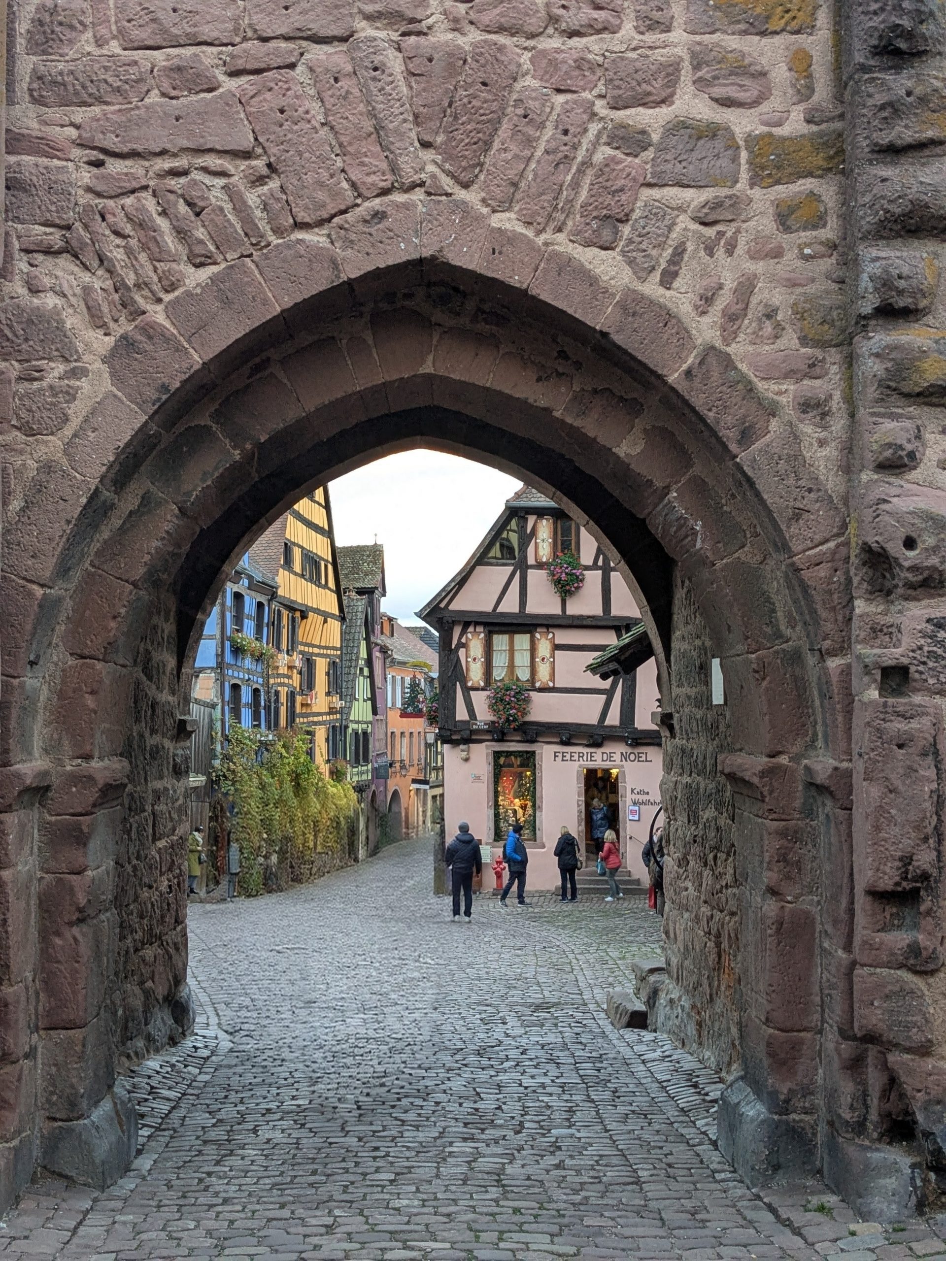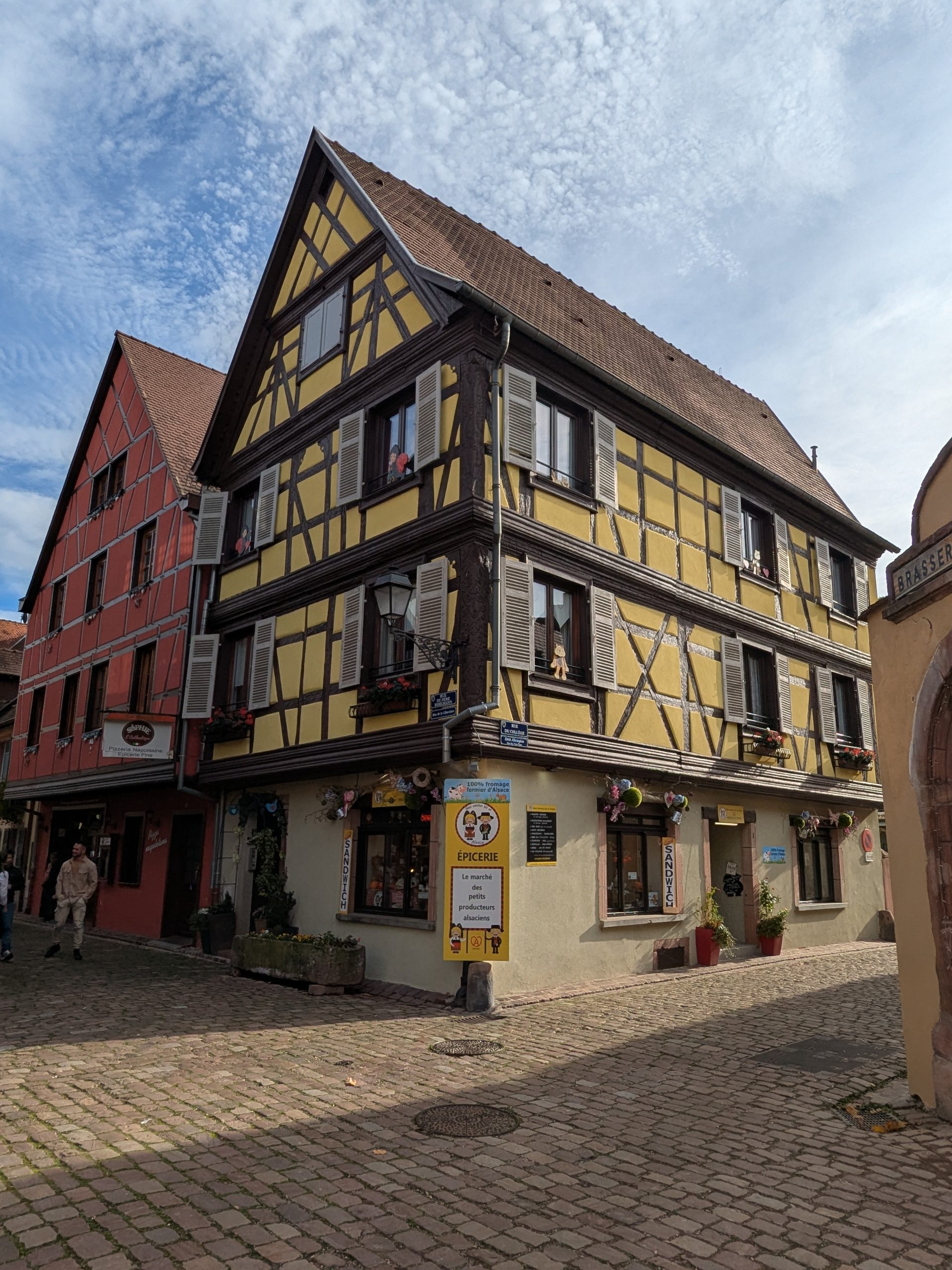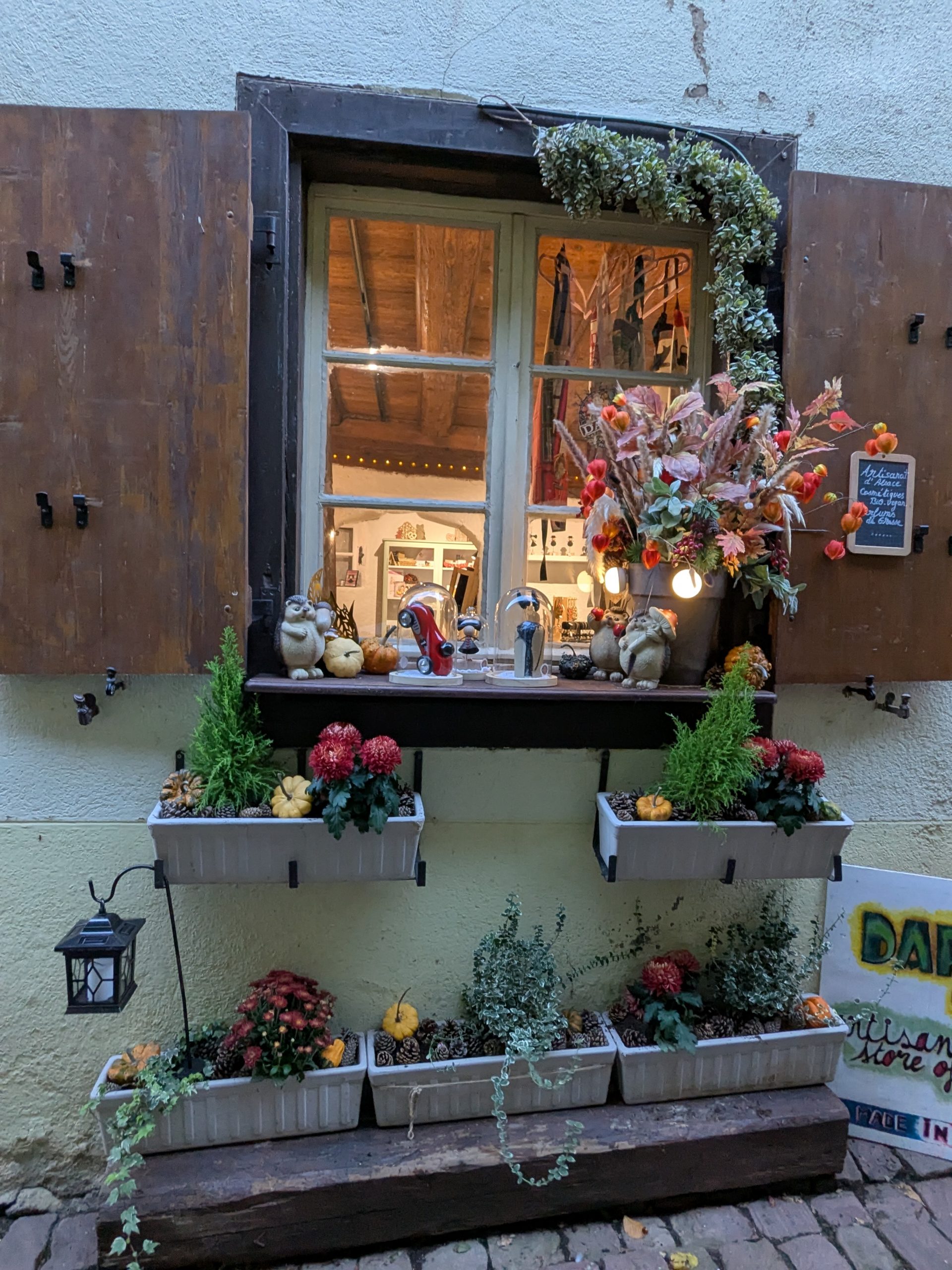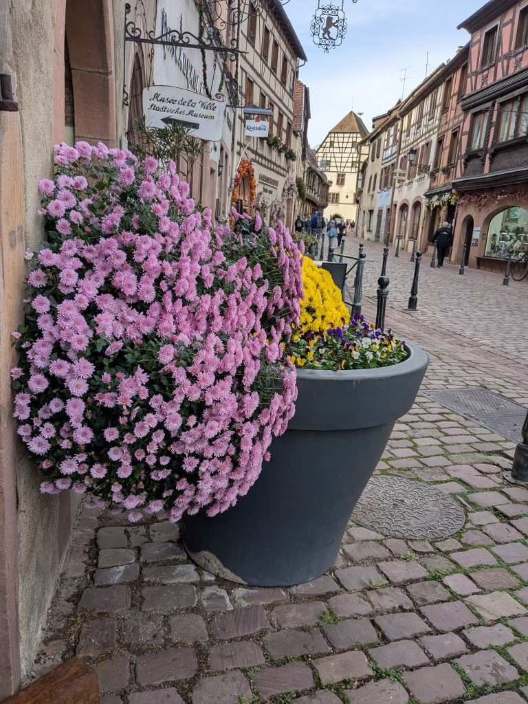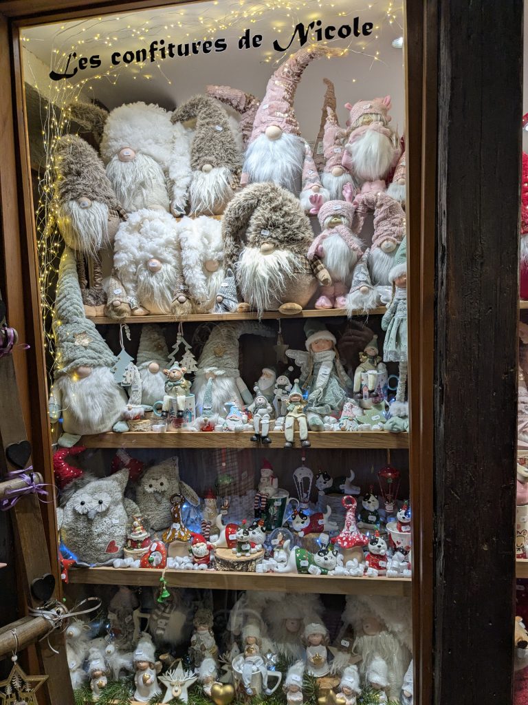 Wir haben lange geschlafen und zum Mittag gefrühstückt bevor wir nach Kaysersberg aufbrechen. Hier waren wir zwar 2022 schon, aber wir wollen es uns noch einmal ansehen. Ich muss Ralf aber hoch und heilig versprechen, dass wir nicht zur Burg hochsteigen. Nach kurzer Fahrt lässt der Parkplatz böses erahnen. Mit Mühe quetschen wir den Dicken in die letzte Parklücke. Das kann ja heiter werden. Doch schon ein paar Schritte weiter bemerken wir, dass es gar nicht so schlimm ist. Es ist wirklich nicht sehr voll. Wir schlendern durch die Straßen, bis hin zum Schweitzer Center. Hat nichts mit den Eidgenossen zu tun, liegt neben dem Geburtshaus von gleichnamigen Albert. Dann schlendern wir zurück und begeben uns auf die Suche nach etwas Essbaren. Aber es gibt wieder mal nur Tarte für viel Geld und jede Menge Süsskram für noch mehr Geld. 10 Macarons für 22,-€, und komische Minigebäckkugeln in Alkohol, Gugelhupfe, Früchte-, Honig- und Gewürzbrot und Lebkuchen, aber nicht mal ein normales Pain au chocolate oder ein belegtes Baguette. Aus lauter Verzweiflung essen wir schließlich etwas Gewürzbrot mit Blaubeeren. Und ich kaufe für ein Vermögen Trüffelkäse zum Abendessen. Dann geht es noch einmal fix in den Intermaché und dann zurück zum Campingplatz.