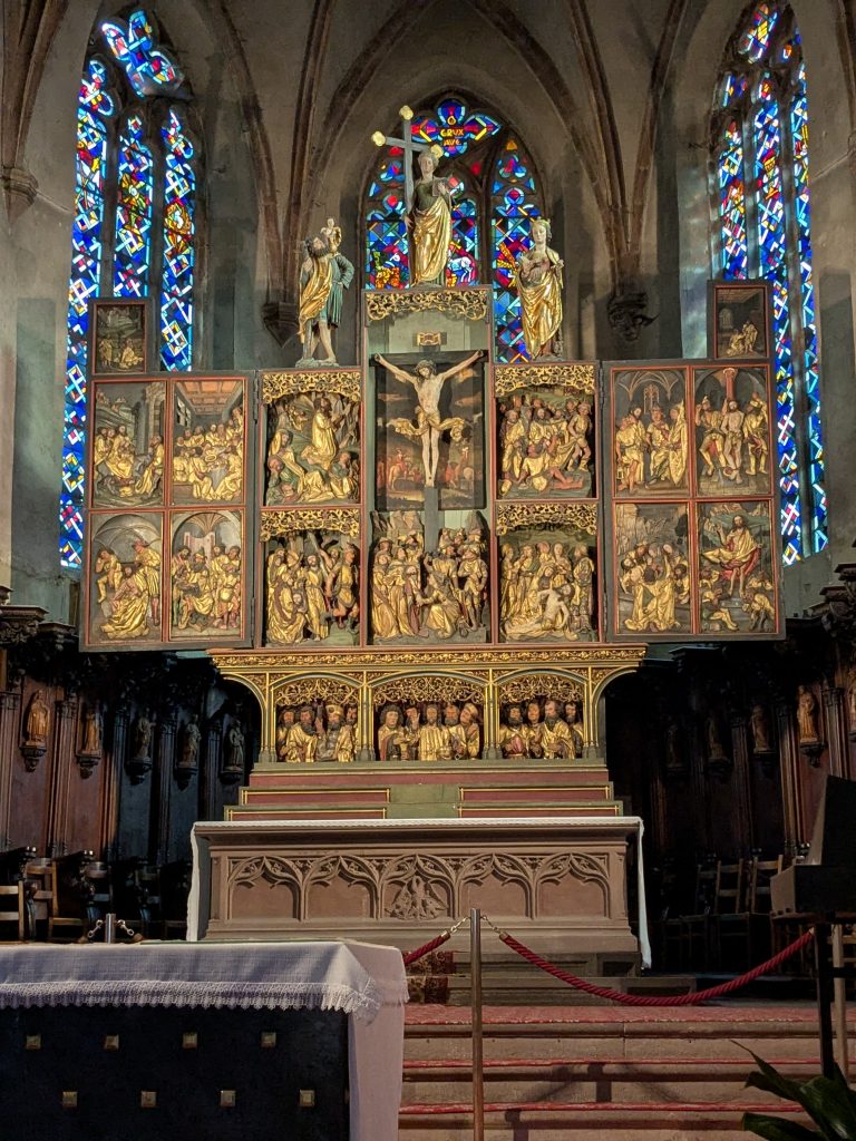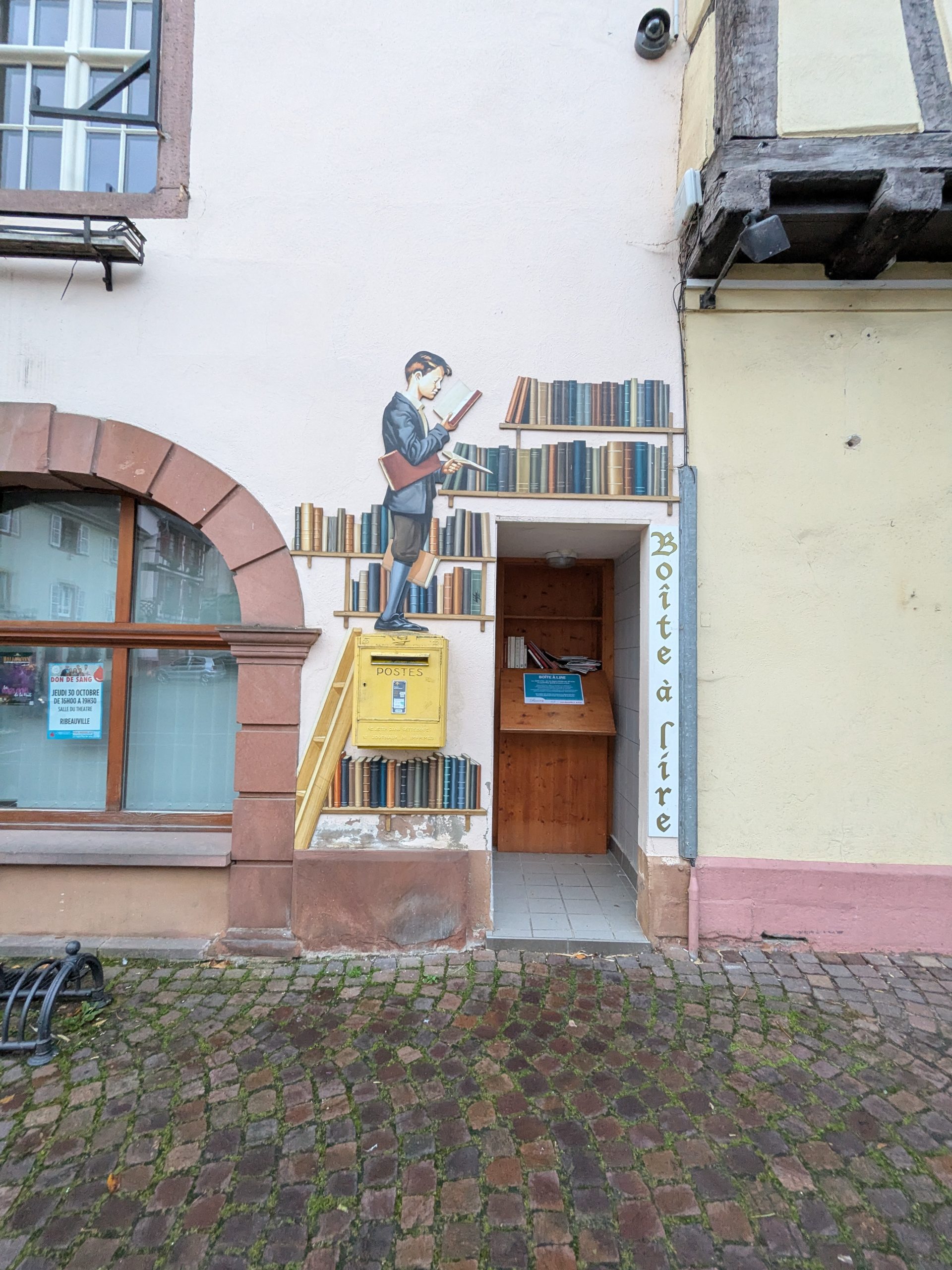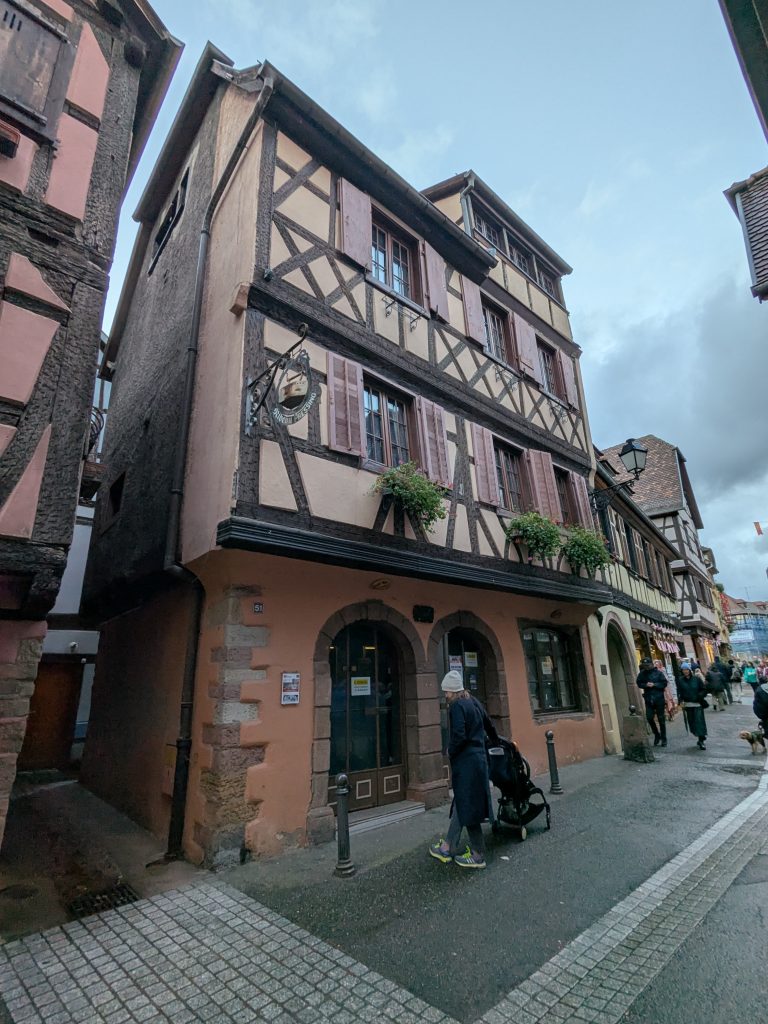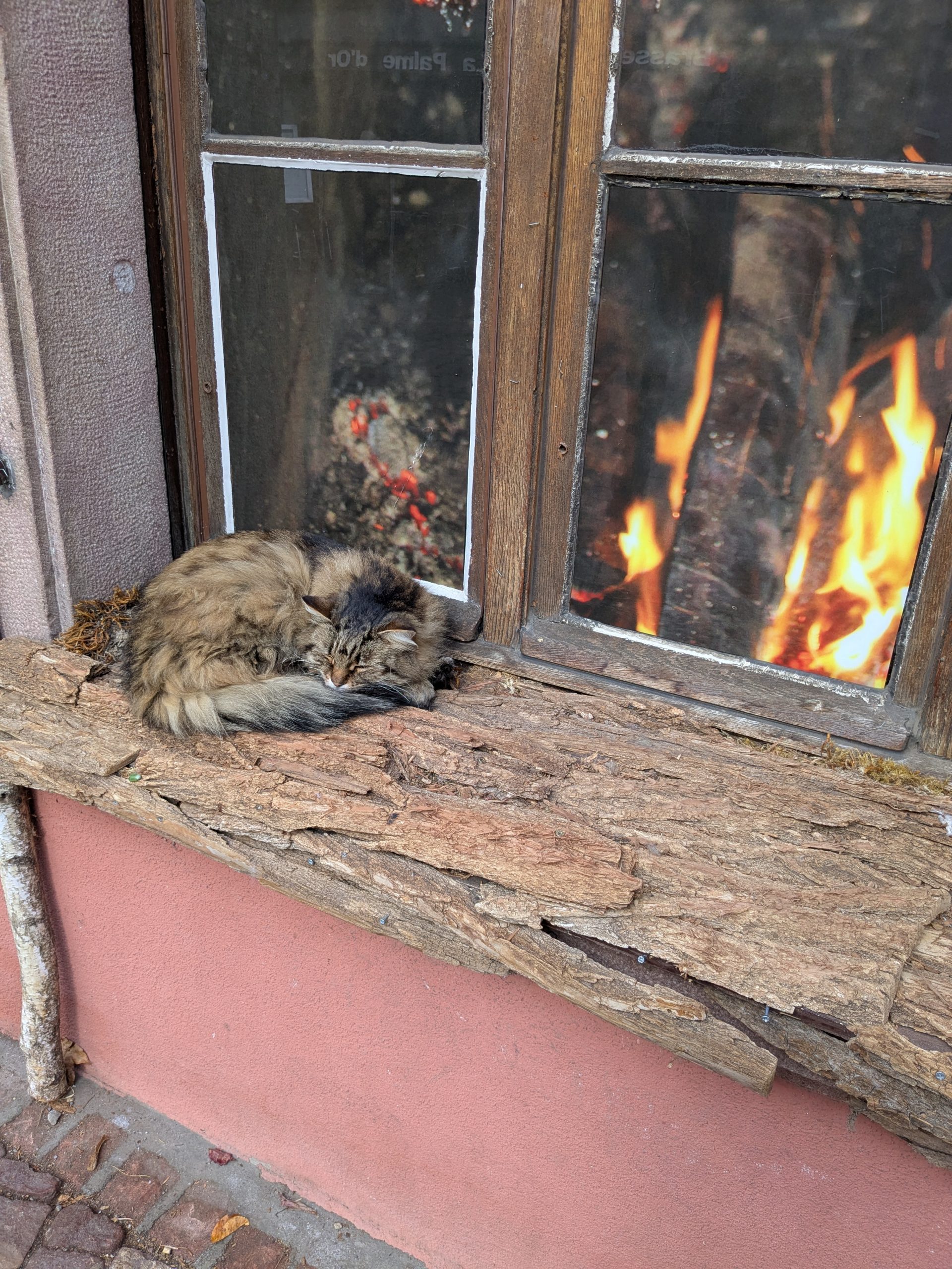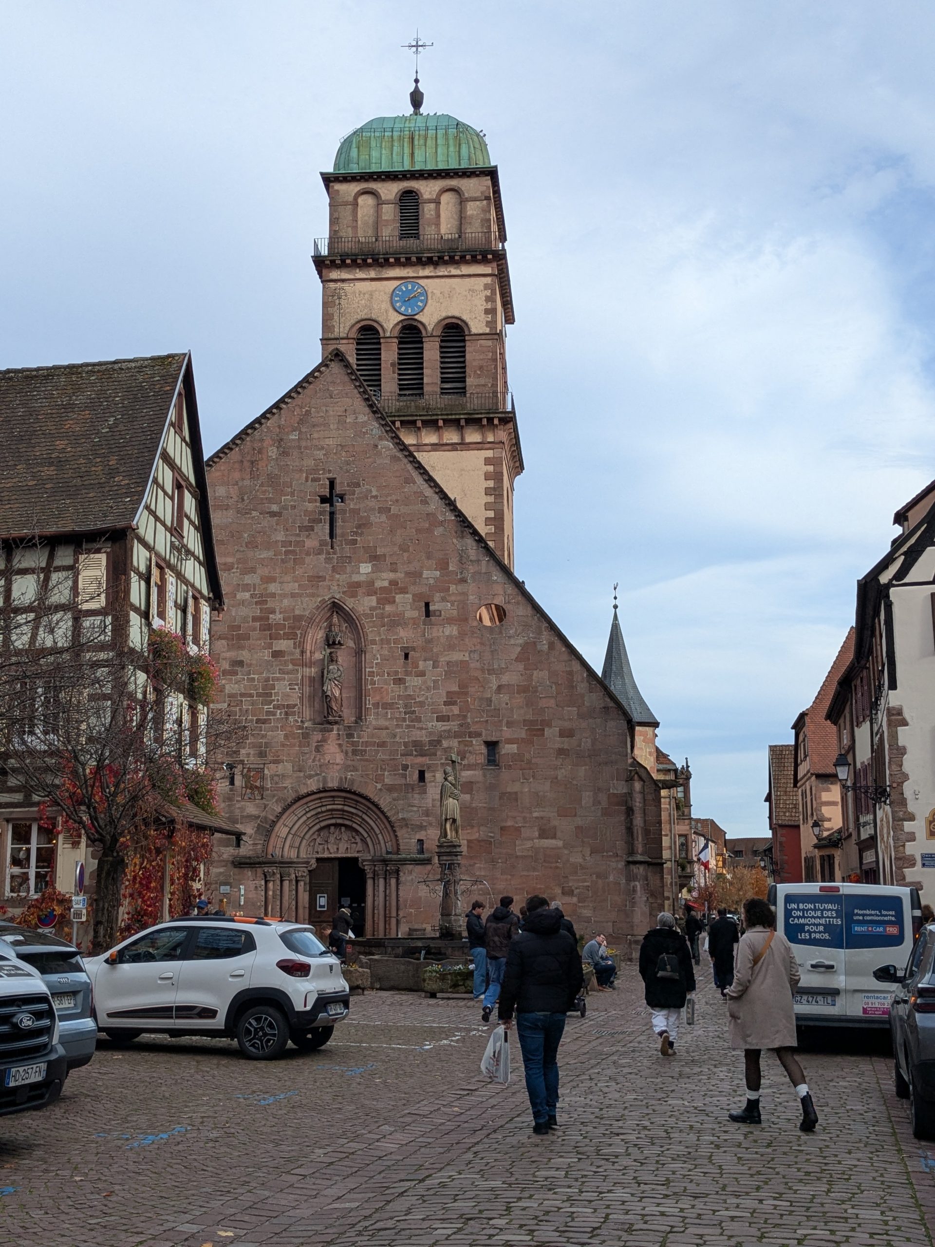 Wir haben lange geschlafen und zum Mittag gefrühstückt bevor wir nach Kaysersberg aufbrechen. Hier waren wir zwar 2022 schon, aber wir wollen es uns noch einmal ansehen. Ich muss Ralf aber hoch und heilig versprechen, dass wir nicht zur Burg hochsteigen. Nach kurzer Fahrt lässt der Parkplatz böses erahnen. Mit Mühe quetschen wir den Dicken in die letzte Parklücke. Das kann ja heiter werden. Doch schon ein paar Schritte weiter bemerken wir, dass es gar nicht so schlimm ist. Es ist wirklich nicht sehr voll. Wir schlendern durch die Straßen, bis hin zum Schweitzer Center. Hat nichts mit den Eidgenossen zu tun, liegt neben dem Geburtshaus von gleichnamigen Albert. Dann schlendern wir zurück und begeben uns auf die Suche nach etwas Essbaren. Aber es gibt wieder mal nur Tarte für viel Geld und jede Menge Süsskram für noch mehr Geld. 10 Macarons für 22,-€, und komische Minigebäckkugeln in Alkohol, Gugelhupfe, Früchte-, Honig- und Gewürzbrot und Lebkuchen, aber nicht mal ein normales Pain au chocolate oder ein belegtes Baguette. Aus lauter Verzweiflung essen wir schließlich etwas Gewürzbrot mit Blaubeeren. Und ich kaufe für ein Vermögen Trüffelkäse zum Abendessen. Dann geht es noch einmal fix in den Intermaché und dann zurück zum Campingplatz.