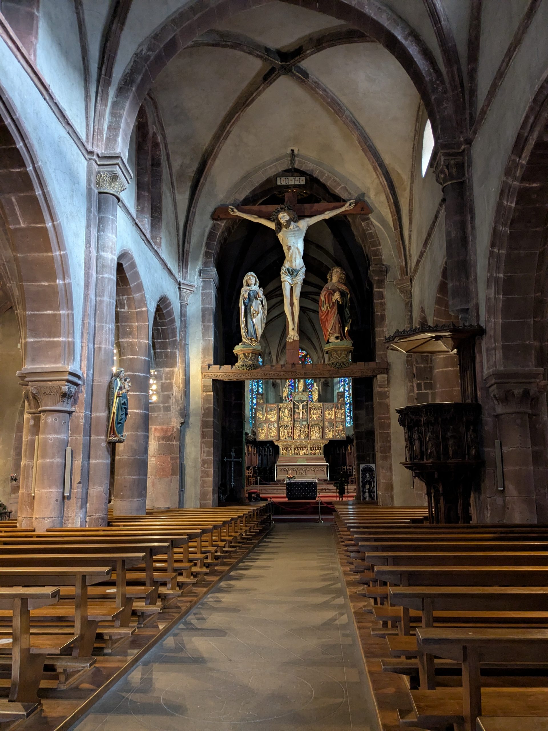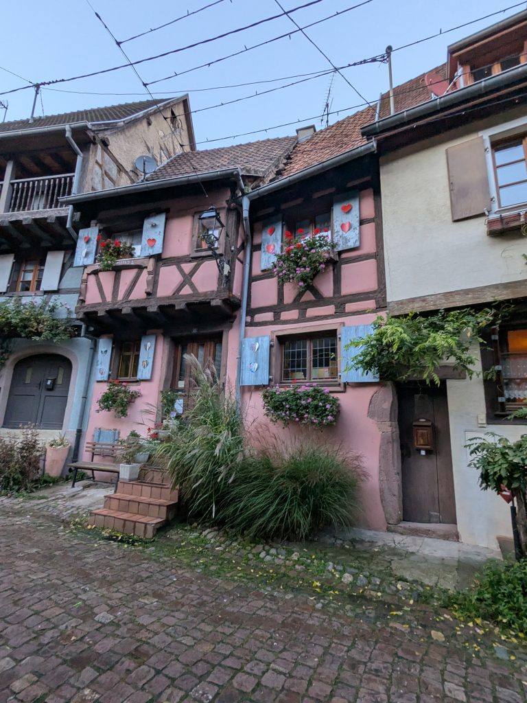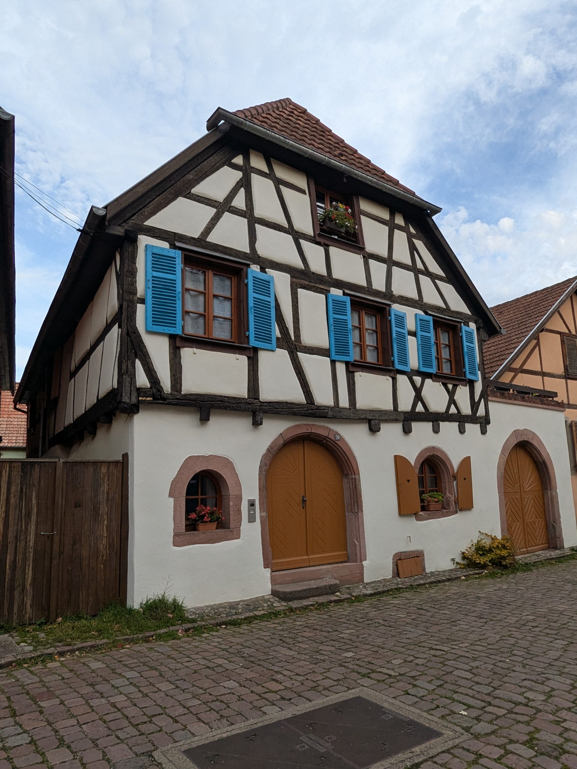 In der Nacht hat es noch ganz gut gepustet, aber wenigstens hatten wir ab kurz nach 23:00 sternenklaren Himmel. Geregnet hat es aber trotzdem? Wie das geht, keine Ahnung! Morgens war es dann aber trocken und gegen Mittag starten wir den Dicken und fahren nach Sélestat. Site seeing. Es gibt hier viele schöne Fachwerkhäuser und 2 Kirchen, die Humanistenbibliothek und ein Brotmuseum, sowie diverse Labcaches. Ein paar Stationen laufen wir ab, bevor wir nach Scherwiller fahren. Hier soll es laut Internet 150 Waschhäuser geben. Wir finden nicht eins, eine andere deutsche Familie sucht sie auch ergebnislos. Irgendwann geht mir auf, das es wohl ein Übersetzungs- oder Definitionsfehler ist, es sind keine Waschhäuser, sondern Wäschestellen an dem kleinen Bach, der das Dorf durchzieht. Hübsch ist es hier trotzdem und einen Labcache gibt es auch. Schließlich fahren wir noch ein Stündchen nach Dambach-la-Ville. Hier gibt es noch mehr hübsche Häuser, eine Kirche, 3 Stadttore und jede Menge Winzer, sowie einen weiteren Labcache. Auf dem Heimweg halten wir noch mal schnell an einem Hyper-U, um ein paar Kleinigkeiten einzukaufen. Super Idee am Freitagabend. Es ist rappelvoll und wir schaffen es gerade noch mit knapper Not um kurz vor 19:00 zum Campingplatz, um unseren Aufenthalt bis Sonntag zu verlängern. Es ist Wochenende und die Wohnmobile rollen unaufhörlich an. Da haben wir keine Lust uns was Neues zu suchen. Also schauen wir mal, was wir morgen machen. Die beiden Burgen in der Nähe hatten wir schon 2022.