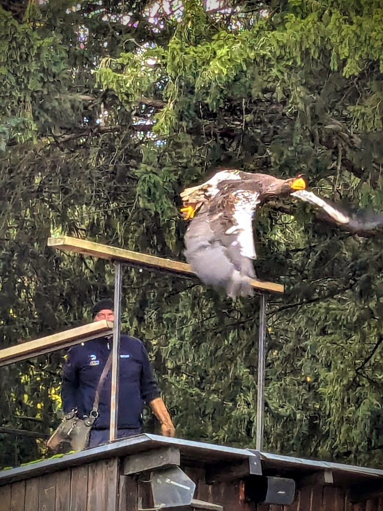 Mal wieder lange geschlafen und das Frühstück mit Rührei und Lachs ist ein frühes Mittagessen. Wir machen einen 2. Anlauf, um die Adlerwarte mit Flugschau der Greifvögel zu besuchen. Ist lustig anzusehen, manchmal dauert es etwas länger, bis sie wieder da sind 😉 . Danach schauen wir uns Riqueville an, hier ist der Touriwahnsinn ausgebrochen, es ist kaum ein Parkplatz zu bekommen, da möchte man gar nicht in der Hochsaison sein.