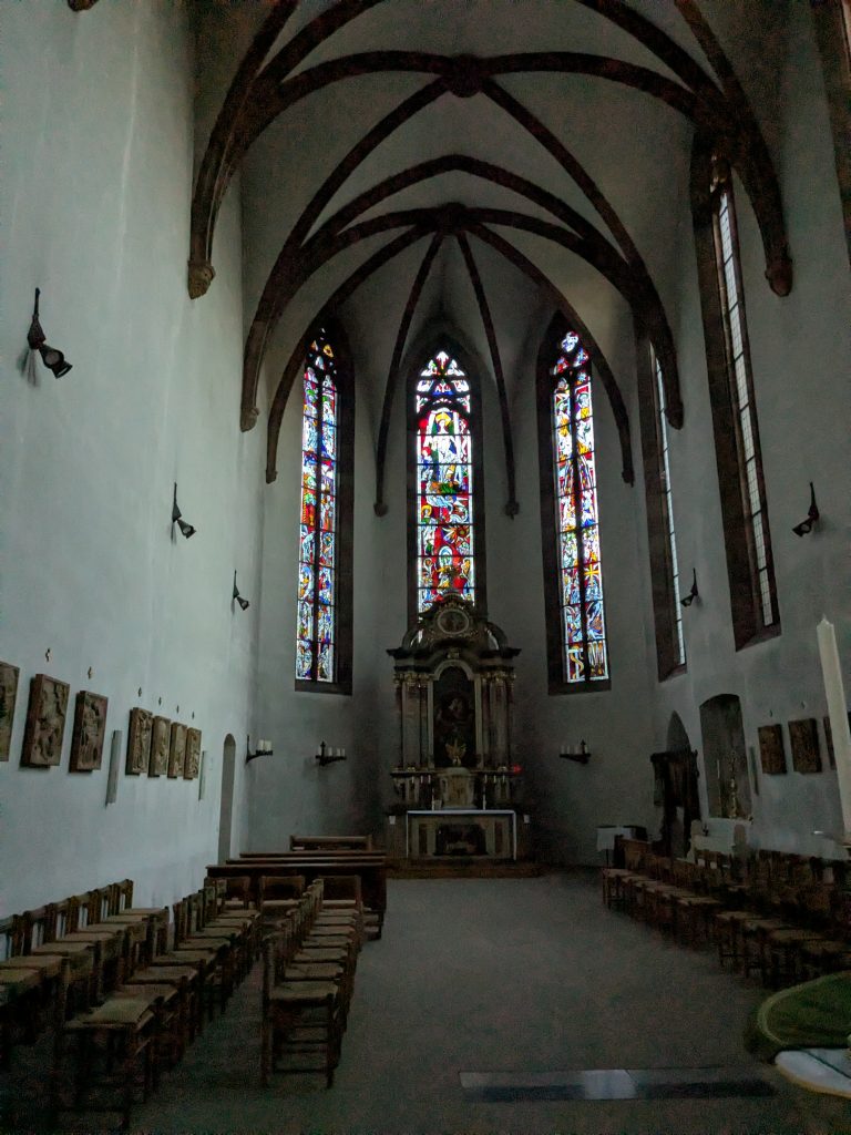 Obwohl die Nacht, abgesehen von einem anstrengenden Baum um 7:00 Uhr wieder herrlich ruhig war, wird es Zeit, uns einen neuen Platz zu suchen. Also, Duschen, Frühstücken, zusammenrödeln, ver- und entsorgen und Abfahrt. Als Ziel haben wir uns den Camping Municipal “ Le Vallon de L’Ehn“ in Obernai ausgesucht. Den kennen wir schon von 2006 und 2022. Unterwegs stoppen wir am Kloster in Marmutier, um es zu besichtigen. Wir finden es aber nicht. Nur die große romanische Kirche gibt es zu besichtigen. Die ist wirklich schön. Aber Kloster: Fehlanzeige. Während ich auf dem Parkplatz Mittag mache, „erklärt“ mir Google, dass das Kloster während der französischen Revolution aufgelöst wurde. Super, ist ja noch nicht so lange her, da kann das hier ruhig noch Abbaie statt Eglise heißen. Nach dem Essen geht es 10 km weiter, zur Feste Kaiser Wilhelm II. Diese riesige Festungsanlage wurde 1893-1914 gebaut und war 1914 mit 254 ha und 6 km Umfang die flächenmässig grösste Festungsanlage im Kaiserreich. Und da es hier nie starke Kampfhandlungen gab, zählt sie zu den besterhaltenen Festungen aus der Kaiserzeit. Etwas 2 Stunden braucht man für die Besichtigung. Bei der es gefühlt durch endlose Gänge und unzählige Räume kreuz und quer unter der Erde entlanggeht, so dass wir zumindest irgendwann jede Orientierung verloren haben. Und zu sehen gibt es längst nicht Alles. Aber irgendwann ist es geschafft! Das Tageslicht hat uns wieder und ich habe das Ganze ohne Panikattacken überstanden. Also gibt es zur Belohnung erstmal einen Espresso im Wobi, denn außer einem Containerklo und dem Kassenhäuschen gibt es hier so gar nichts. Wir machen uns also wieder auf den Weg. Tanken und Einkaufen beim Carrefour in Dorlisheim und dann ab zum Campingplatz. Hier finden wir nach einem sehr freundlichen Empfang (der junge Mann spricht fließend Deutsch) eine neue Bleibe auf Platz Nr 40.