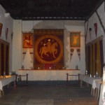 Nach einem gewohnt ausgiebigen Frühstück und der schönsten Dusche des Urlaubs (es gibt in jeder Duschkabine eine Frau im Jugendstil auf dem Wandkacheln) starten wir zunächst nach Wells. Beim zweiten Kreisen durch die engen Straßen, schaffen wir es dann das Auto abzuwerfen und stapfen wieder mal bei strahlender Sonne los. Die Kirche ist noch weit weg. Aber irgendwie ist sie ziemlich klein und beherbergt zusätzlich zur Kirche ein Café und eine Kinderspielecke. Eine nette Engländerin klärt uns auf, dass hier ist nicht die Kathedrale, es ist St. Cuthbert. Hab ich auch schon gemerkt, dass hier was nicht stimmt. Aber die Kirche ist trotzdem schön. Hell, sonnendurchflutet, mit reicher Deckenmalerei. Nachdem wir genug geguckt haben stapfen wir los und finden schließlich „The Cathedral“. Hier bekommt Larissa ein Quis zur „Royal Wedding“ aufgedrückt. Die spinnen die Briten. Ich bin nur froh, dass wir am Freitag die Fähre nehmen. Ganz allmählich wird es hier gruselig. Die Pubs werben damit, dass man bei ihnen die „Royal Wedding“ live gucken kann, die Läden bieten jede Mendge Tinnef mit Kate und William an, es gibt Wedding Cake und Pappteller und Becher mit der englischen Flagge. (haben wir selbst). Egal, England ist im Hochzeitsrausch, aber wir wollen jetzt erstmal die Cathedrale anschauen, und genau das tun wir auch erstmal ganz ausgiebig. Danach gibt es lecker Subs und dann starten wir Richtung Avebury. Unterwegs wollen wir ein Kaffeepäuschen an Nunney Castle machen. Das ist aber nicht zu finden. Und die Straße nach Nunney ist für unser Wobi zu schmal, oder auch das Wobi zu dick. Also canceln wir das Ganze und fahren weiter.Bei Westbury gibt es ein „White Horse“, da gibt es einen Parkplatz, sagt der Reiseführer. Parkplätze sind hier nämlich Mangelware und Ralf hätte gern ein Käffchen. Also los. Beim zweiten Versuch finden wir die richtige Straße und finden auch die einzige Brücke, die breit genug für uns ist. Dumm ist nur, dass hier grade gebaut wird und die Brücke deshalb für Fahrzeuge über 3t gesperrt ist und wie hätte unser Dodo früher gesagt „So dick ist“ für uns heißt das „Du kumst hier nich durch!“ Blöd, also wieder keinen Kaffee und nur einen entfernten Blick auf den schimmligen Berg. Äh ich meine auf den Schimmel am Berg.
