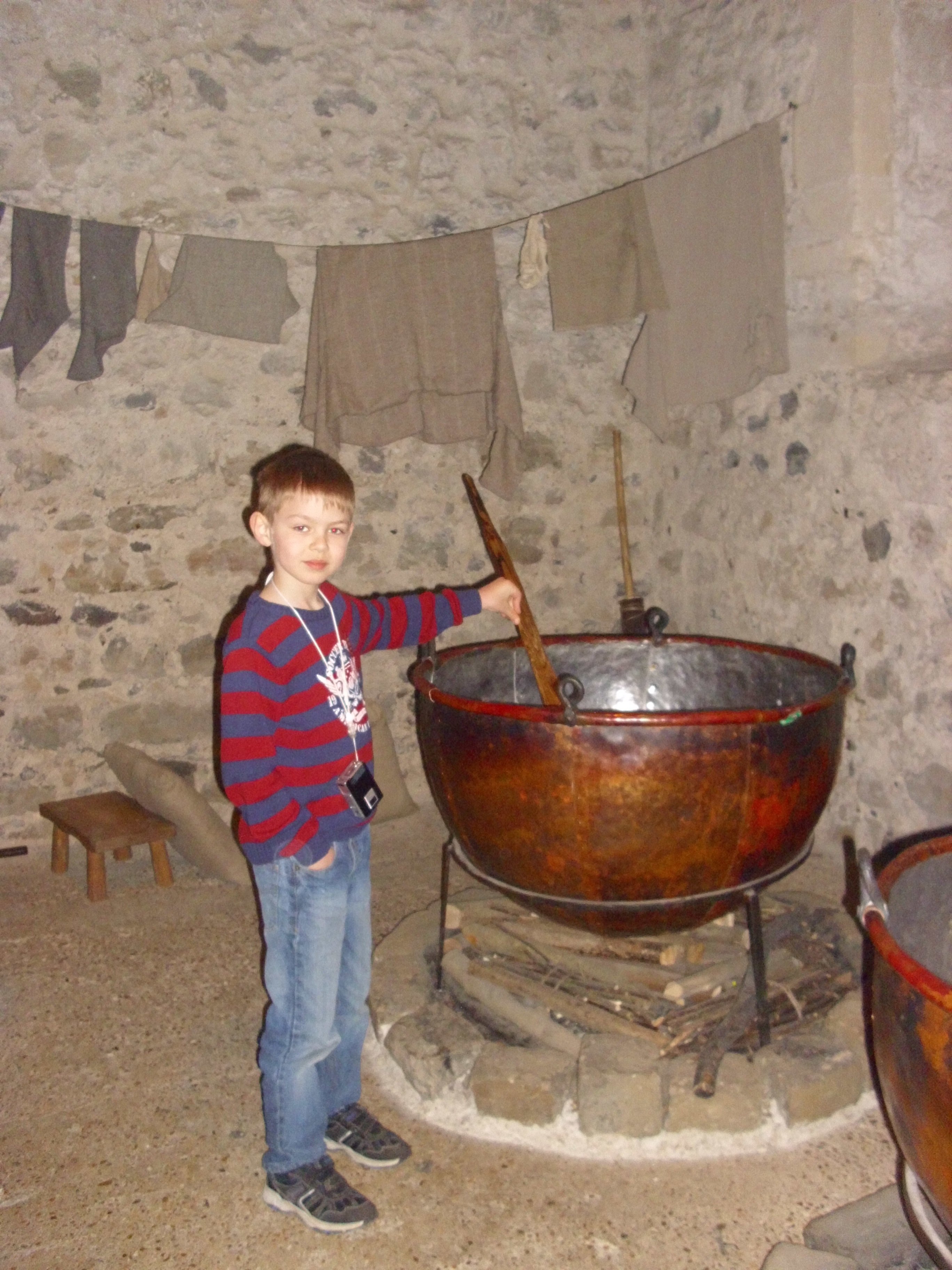 7°° Der Wecker klingelt, die Sonne scheint, die Nase läuft. Ich hechte mich aus dem Bett und schalte die Kaffeemaschine ein. Ich liebe meine Kaffeemaschine. (Die ist neu! Bisher mußte ich altmodisch filtern!) Zurück ins Bett. 6 Minuten später ist der Kaffee fertig und ich bin glücklich. Also Haare waschen, Kinder wecken, zusammenpacken, halt so das Übliche. Wie üblich wird auch englisches Frühstück gewünscht. Kein Problem! es ist doch ein Leichtes mit zwei Gasflammen und zwei mickerigen Pfannen für 3 Personen englisches Frühstück zu zaubern. Also Larissa ordert Rührei, Toast und Bohnen. Ralf mag Spiegelei (schön glipschig) Toast, Bohnen und Schinken. Dominik nimmt das Gleiche wie Ralf, aber die Eier bitte von beiden Seiten gebraten. Ich nehme einen Kaffee, schwarz, ohne alles. Das ist leicht. der Rest erfordert doch eine gewisse Logistik, da ja auch noch der Toast auf einer der zwei Gasflammen zubereitet werden muss. Aber Hotel Mama ist fast perfekt und so sind 10 Minuten später alle glücklich. Larissa geht abwaschen, dann geht es los. Wir wollen nach Tintagel. das Navi ist super. Es führt uns zielstrebig auf die kleinsten Straßen. Das heißt dann hier „Single Track“, die unser Wobi saugend aufnehmen. Bei Bodmin ist dann mal wieder Schluss mit Lustig. Das Navi möchte uns kreuz und quer, völlig ohne Verstand durch die viel zu engen, viel zu steilen Straßen lotsen. Das wollen wir aber nicht, also das Laptop angeschmissen und nochmal das Ganze. Mit dem GPS über das Laptop ( Heute ist es tatsächlich da) geht es dann problemlos. Zumindest eine Zeit lang. Jetzt kommt nämlich der Nebel. Wie es sich für England gehört, ist er plötzlich einfach da und die Landschaft einfach weg. Bis Camelford geht ja auch alles gut. Danach irren wir wieder mal auf „saugenden“ Straßen irgendwo durchs Nirgendwo. Aber schließlich und endlich erreichen wir Tintagel, parken und irren auf der Suche nach Mittagessen „to Take away“ los. Wir finden King Arturs Arme, King Arturs Head (Larissa meint, Hier kann man sich aus den Pubs einen ganzen King Artur basteln) aber kein Fish und Chips, nur Pasties und die wollen wir nicht. Also zurück zum Wobi und Sandwiches und French Toast eingeworfen. Dann ein neuer Versuch wir stapfen los, aber irgendwann sieht es komisch aus. Es ist zwar 14 Jahre her, das Ralf und ich hier waren. aber erscheint uns doch eher unwahrscheinlich, dass sie den asphaltierten Wanderweg von damals in einen matschigen Weg zwischen Campingplatz und Pferdestall geändert haben. Also umdrehen und einen dritten Versuch starten. (Ich frage mich nur, wann die Deutschen, die uns nachgelaufen sind, merken, dass sie hier falsch sind. Die haben uns, als wir stehen geblieben sind, überholt und sind brav weiter gegangen.)