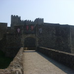 Danach starten wir über Liskeard, Lostwithiel, St.Austell und Truro nach Falmouth. Pendennis Castle steht auf dem Plan Wir wissen nicht so recht, wo wir in Falmouth lang müssen. Das Navi kennt Pendennis nicht, also Stop und das Garmin befragt und das Garmin weiß Rat. Wir fahren also weiter und 200m weiter steht dann auch ein Hinweisschild. Der Parkplatz erweist sich als nächste Hürde. Die Parkplätze sind alle zu kurz. Schließlich stehen wir aber und es gibt erst mal lecker Schwarzbrot, dann parkt Ralf nochmal kurz um und los geht es. Ich habe Pendennis hauptsächlich wegen seiner herrlichen Lage ausgesucht und in der Hinsicht erfüllt es auch voll die Erwartungen. Ansonsten gibt es noch fröhlich animierte Puppen, die die einlaufenden Tanker mit einer Kanone beschießen und jede Menge nur mäßig interessante Geschütze aus dem 2.Weltkrieg. Aber die Aussicht ist traumhaft, die Sonne scheint und alles wäre super, wenn es nicht ganz so windig wäre. Nach 1 1/2 h geht es zurück zum Auto und ab Richtung Looe. Unterwegs legen wir noch einen kurzen Stop bei Restomel Castle ein. Die Ruine ist eine normannischen Burg und liegt traumhaft im satten englischen Grün in der Nachmittagssonne. Wir verbringen hier noch einmal ein nettes Stündchen. Dann geht es endgültig zurück. Wir wollen Grillen und Larissa will Knoblauch. Also versuche ich Knoblauchbutter zu machen. Dummerweise ist die Butter zu hart. Aber wie zum Geier bekommt man im Wohnmobil harte Butter schnell weich? Des Rätsels Lösung, man föhnt die Butter. geht prima und wir haben zum Essen lecker Knobibutter. Toast mit Knobibutter, Tomate und Zwiebeln – ist superlecker und vertreibt Vampire, Mücken und Mitmenschen. Nach dem Abwasch noch schnell eine Runde „Tal der Abenteuer“ und ab ins Bett.