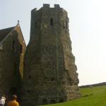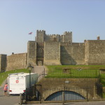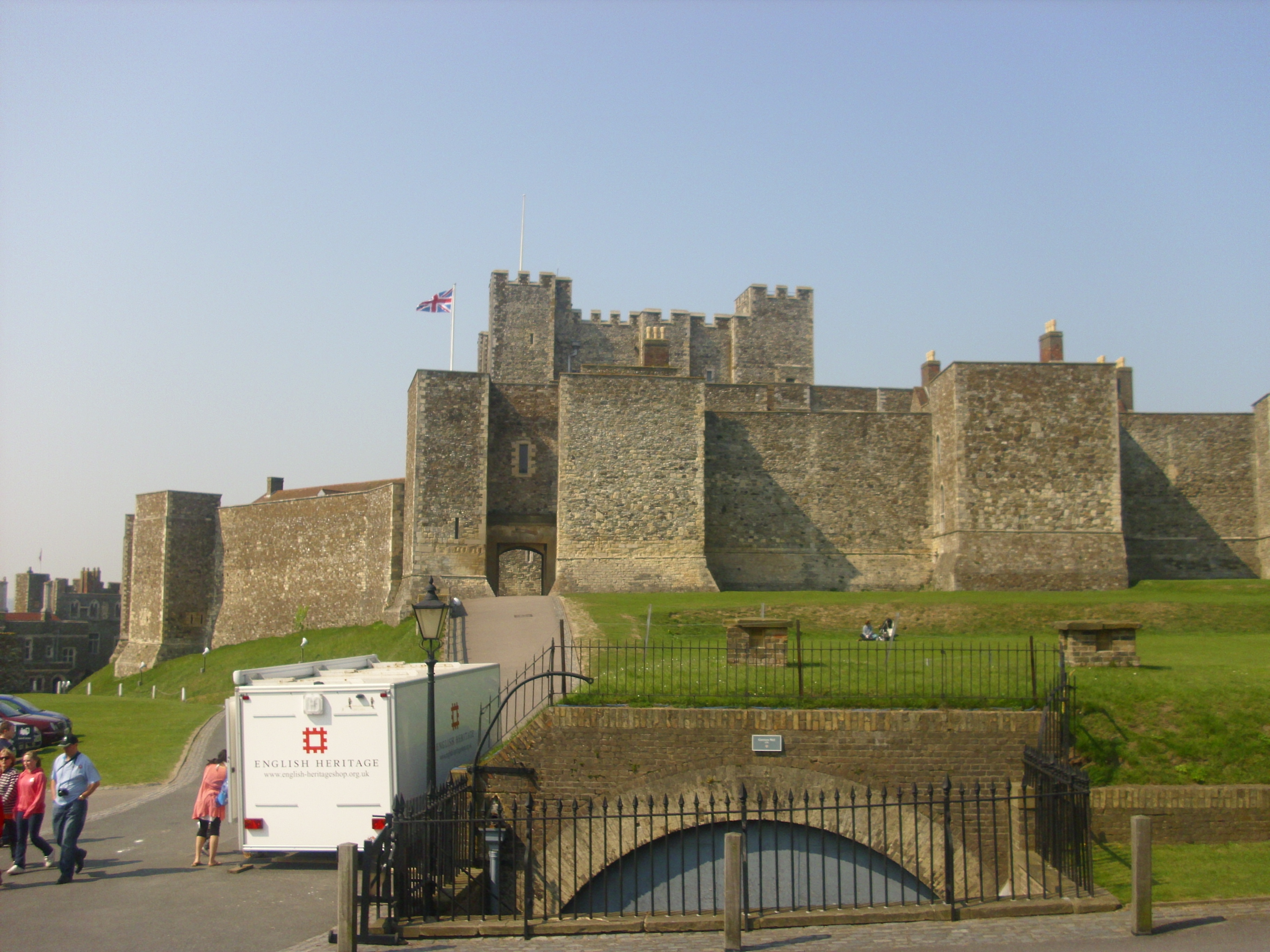Die Nacht war ruhig und der Morgen ist gut. Die Sonne scheint und es verspricht ein schöner Tag zu werden zu mindestens hier. In England ??? Bastian hat versagt. England ist im Nichts versunken. gegen 10°° sind wir an der Fähre. viel zu früh. aber, das stört P&O nicht. Kurzerhand fahren wir schon um 10²° (MEZ) statt um 12.10 Uhr. und sind somit schon um 10.²° (GMT) in England, wenn die Fähre es denn findet. Aber wir sind mutig und fahren an Bord. Die Überfahrt ist sehr angenehm und ruhig. Dann, um 10°° ist es endlich so weit, aus dem Weiß des Nebels tauchen zuerst ganz zaghaft, dann langsam deutlicher die Klippen von Dover auf. (wurde ja auch Zeit, wir legen in 10 Minuten an) Da wir richtig schnell waren sind wir schon 20 Minuten nach unserer Abfahrt in Frankreich durch die Englische Zollkontrolle. Nein, es gibt immer noch keine Überschallfähren, und das ist auch keine Zauberei, das ist schlicht und ergreifend Greenwich Mean Time. Prima, da lohnt sich sogar noch eine erste Besichtigung. Also links fahren, links fahren Papa macht das prima! Und das Wetter ist auch prima. Wir sind in England und die Sonne scheint ohne Ende. Wir wollen zu Dover Castle links fahren. Ralf fährt links und wir sehen das Schild „keine Fahrzeuge über 2 m Höhe und Breite“ zu spät und er muss das ganze rückwärts, links wieder runter fahren. ein Stück weiter den Berg rauf gibt es noch ein unscheinbares Schild zu einem Besucherparkplatz. das sehen wir aber erst, als wir links dran vorbei gefahren sind. Also den Berg rauf, drehen und erstmal mit Blick auf den Hafen Mittag essen. Dann ein neuer Anlauf. Hier gibt es nicht nur einen kostenlosen Parkplatz, sondern auch einen kostenlosen Busservice zum Castle.